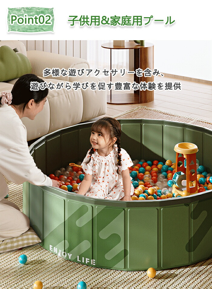 ペットが水浴びを楽しむだけでなく、子供用プールやボールプール、釣り用プール、おもちゃのプールとしても活躍します。裏庭や芝生、ビーチ、さらには屋内でも使えるので、犬や子供たちが楽しい夏を過ごせるアイテムです。
