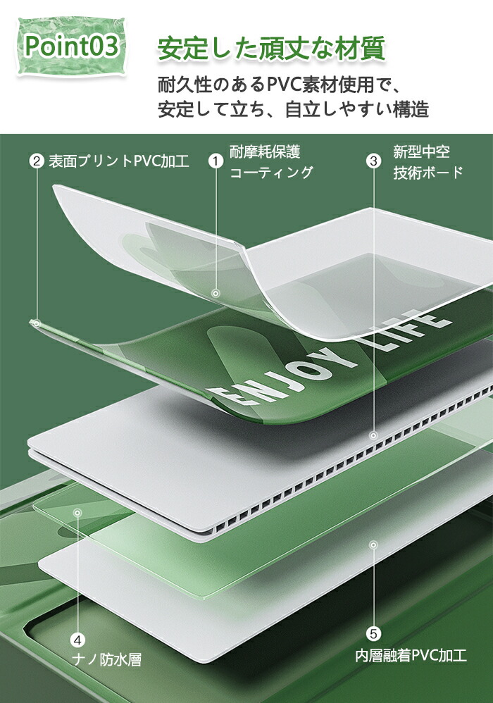 使用後しっかり乾燥させた後は、コンパクトに畳むことができ、側面をジグザグに折りたたんで、最後に底面を折り畳むだけで整理整頓できます。