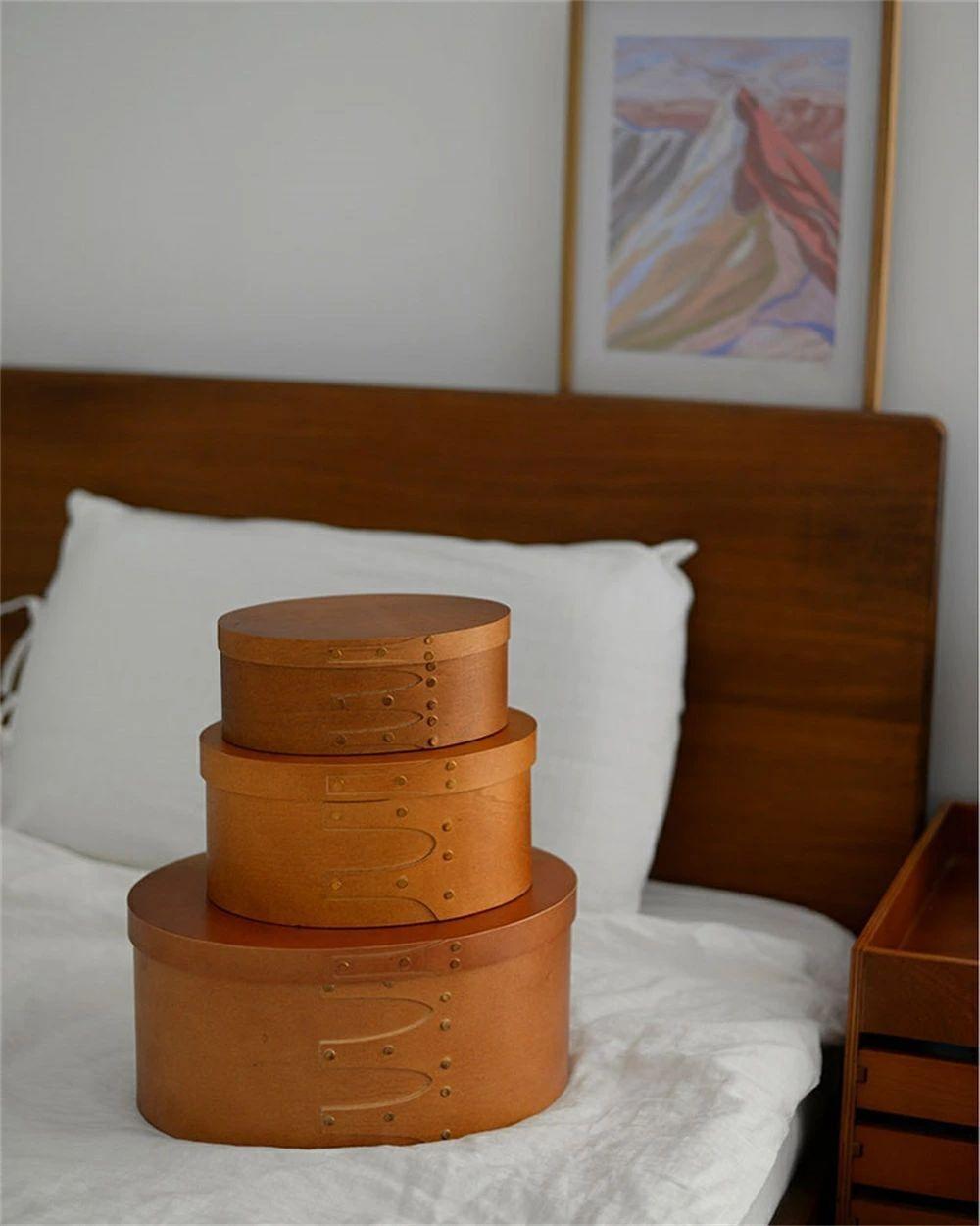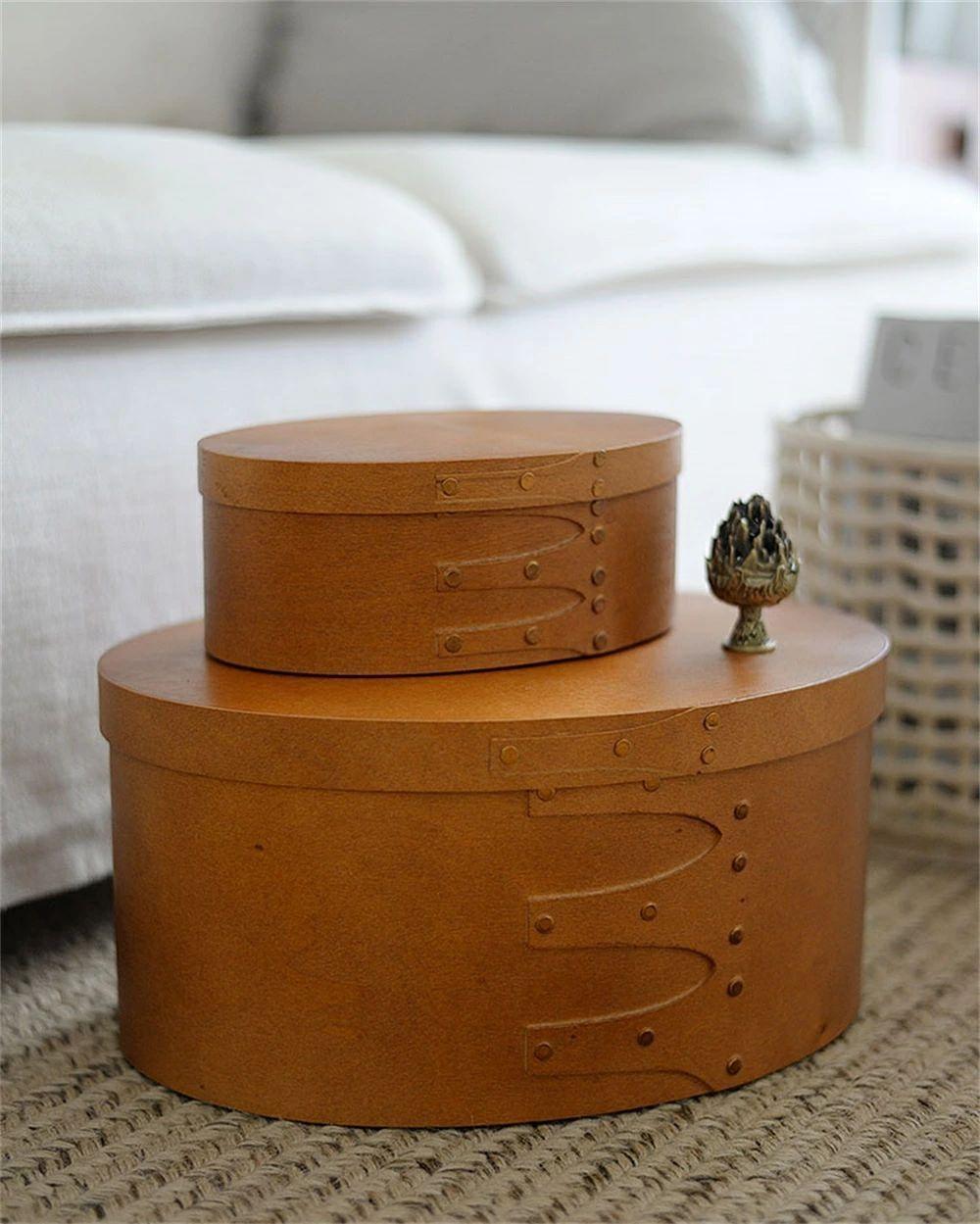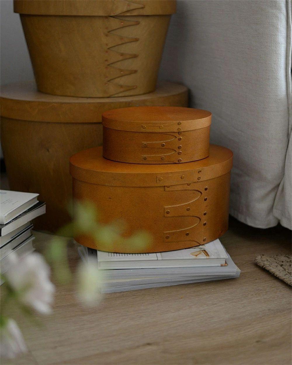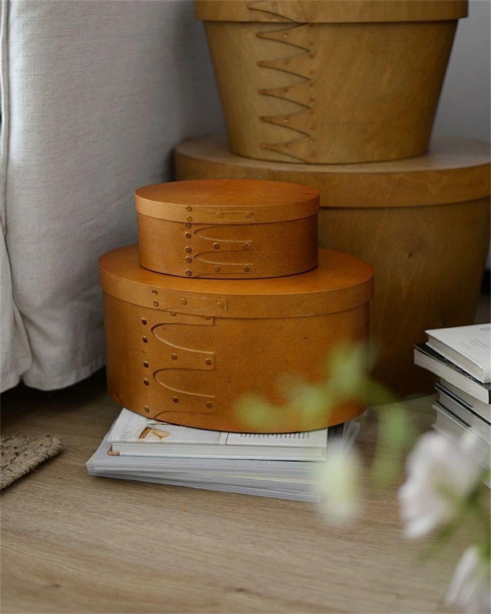 天然木 シェーカーボックス 大中小3個セット ラウンド 北欧 オーバルボックス シェイカーボックス 木箱 収納ボックス ふた付き アンティーク 風 浅型 裁縫箱 ソーイングボックス おしゃれ