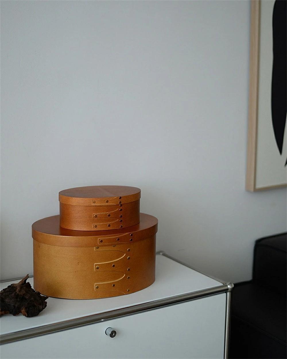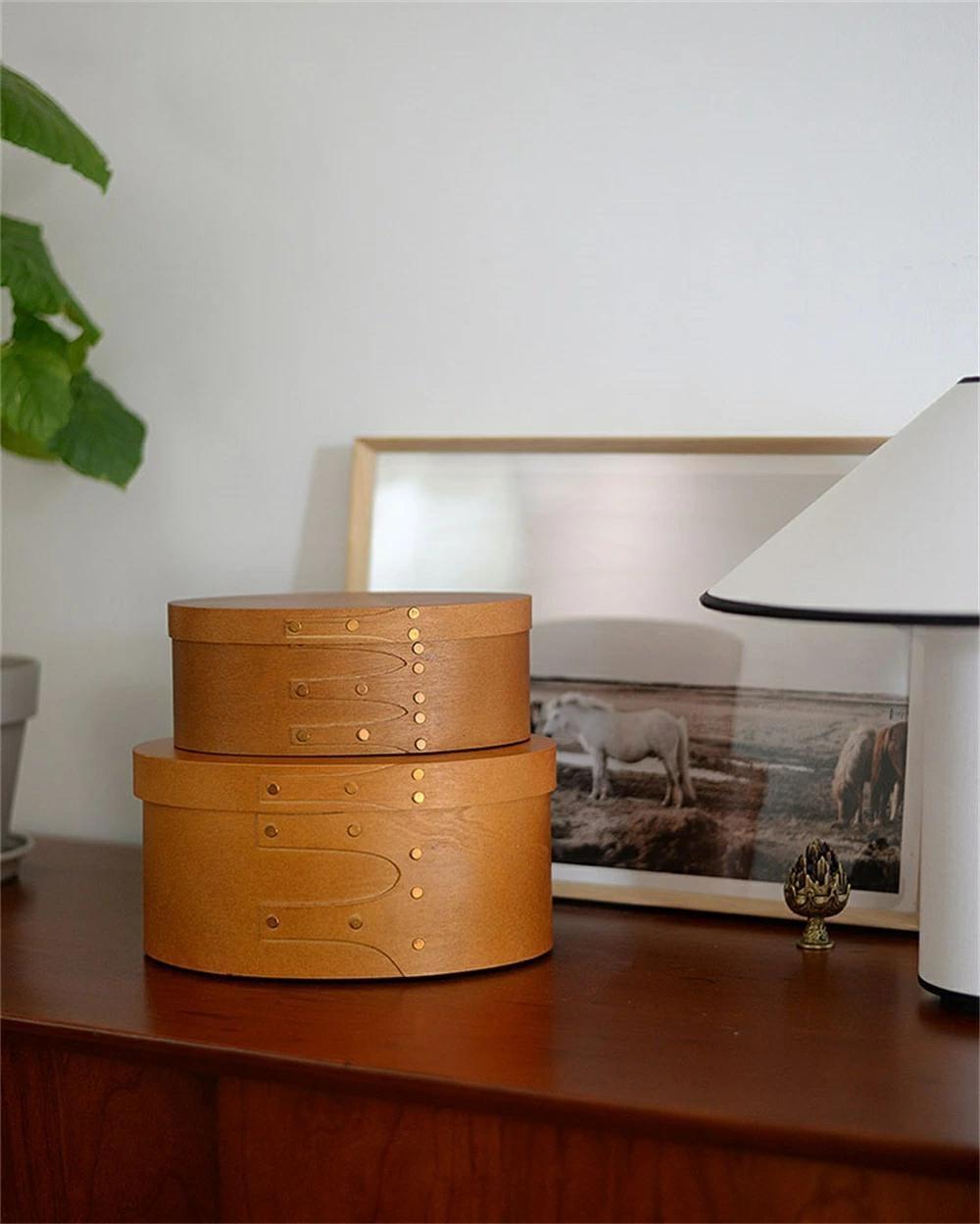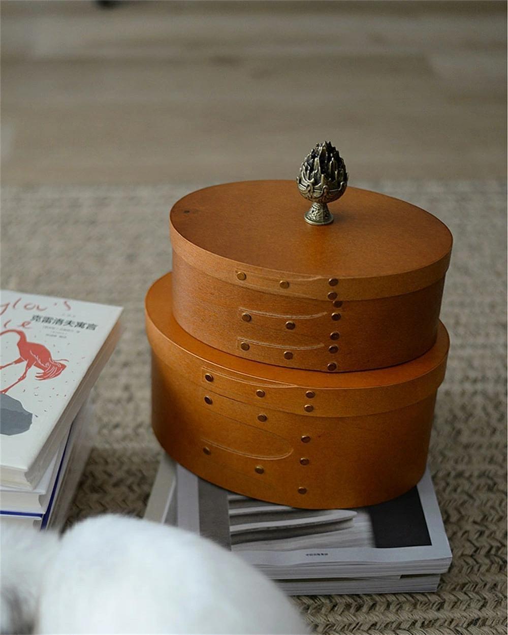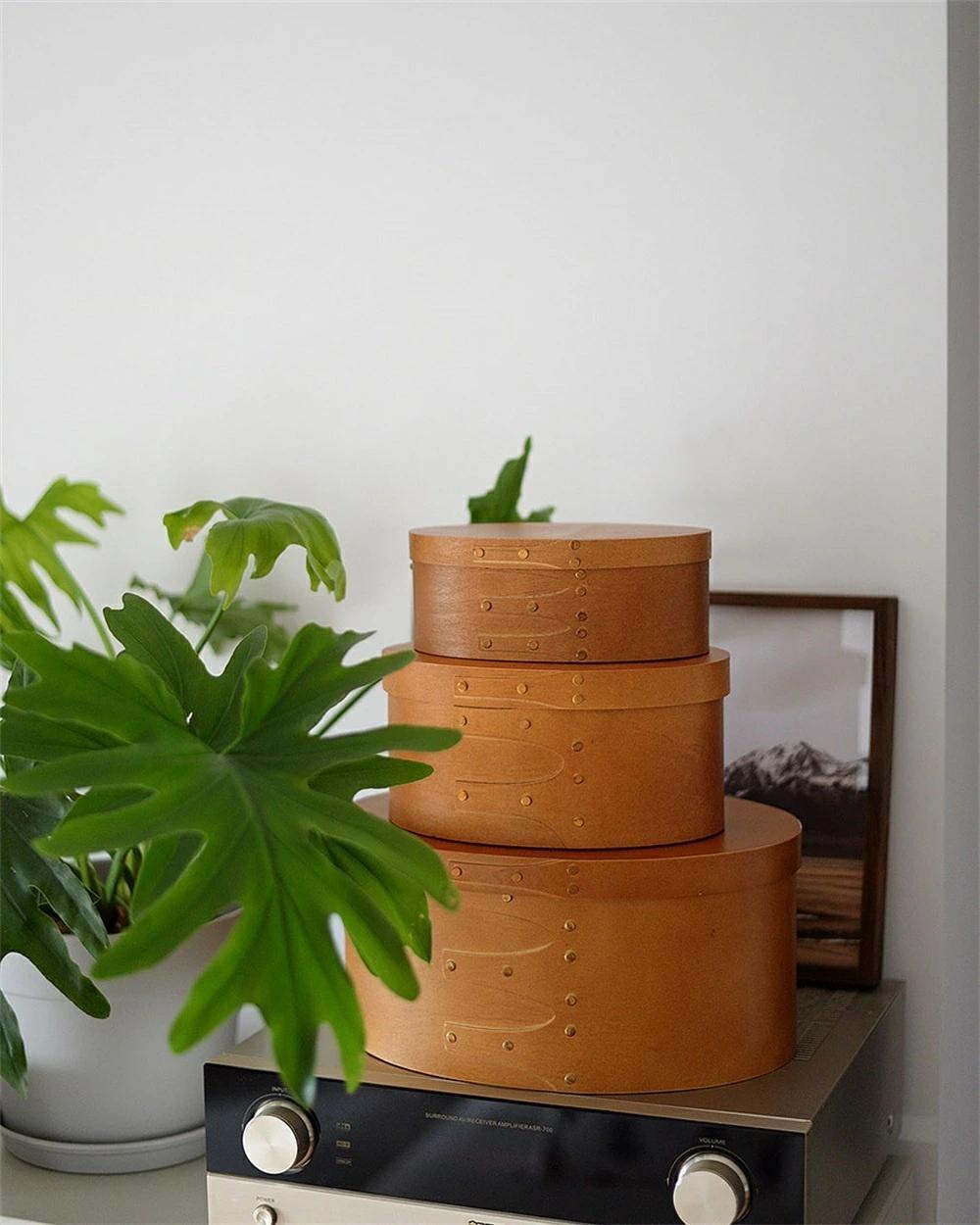 天然木 シェーカーボックス 大中小3個セット ラウンド 北欧 オーバルボックス シェイカーボックス 木箱 収納ボックス ふた付き アンティーク 風 浅型 裁縫箱 ソーイングボックス おしゃれ
