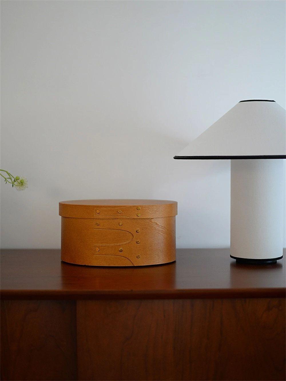 シェーカーボックスとは、19世紀にキリスト教プロテスタント宗派のシェーカー教徒たちが薄い木材を曲げて作った、シンプルな木箱の事です。スワロウテイルと呼ばれる燕尾形のスライスした木を組んで作られています。