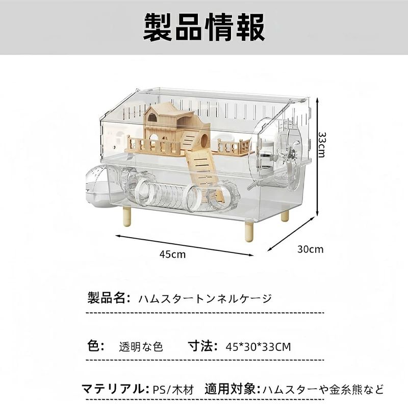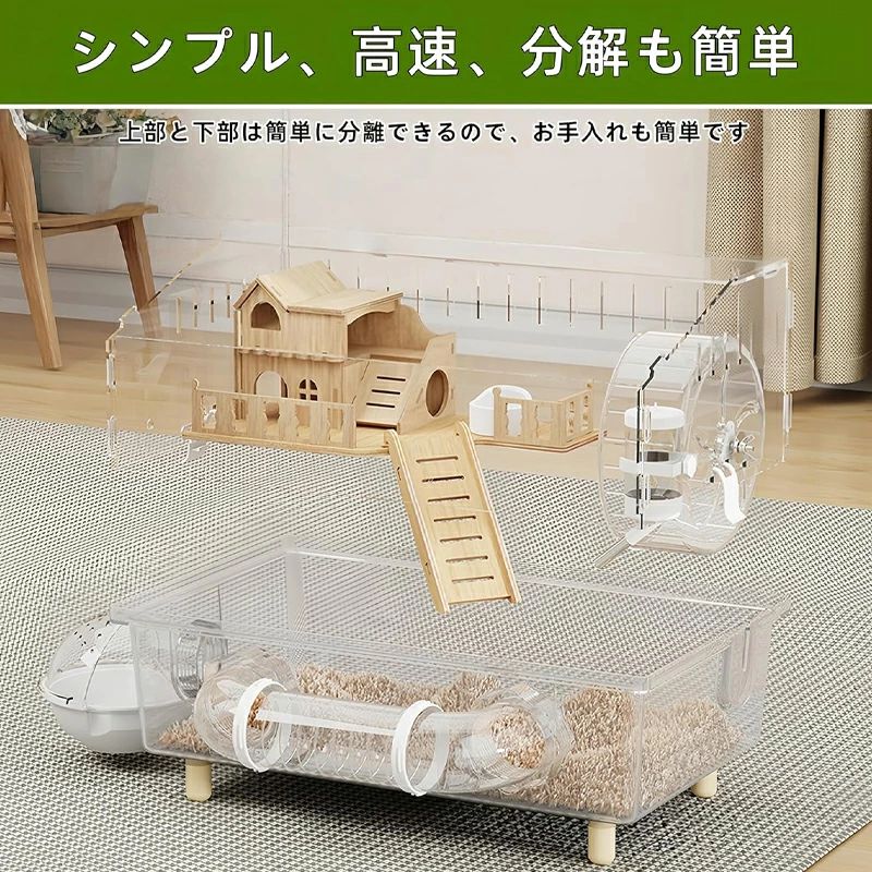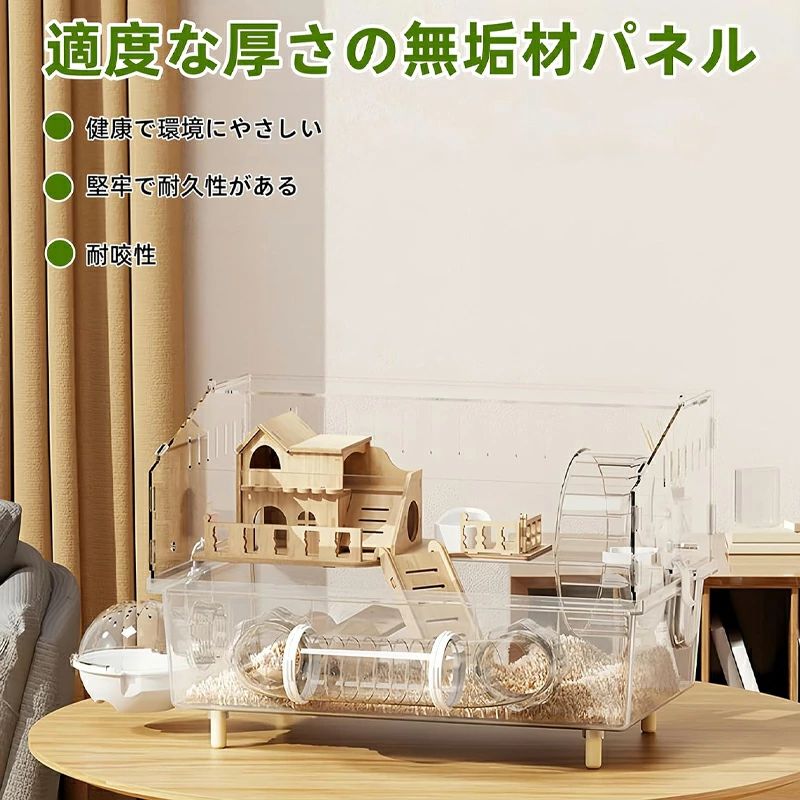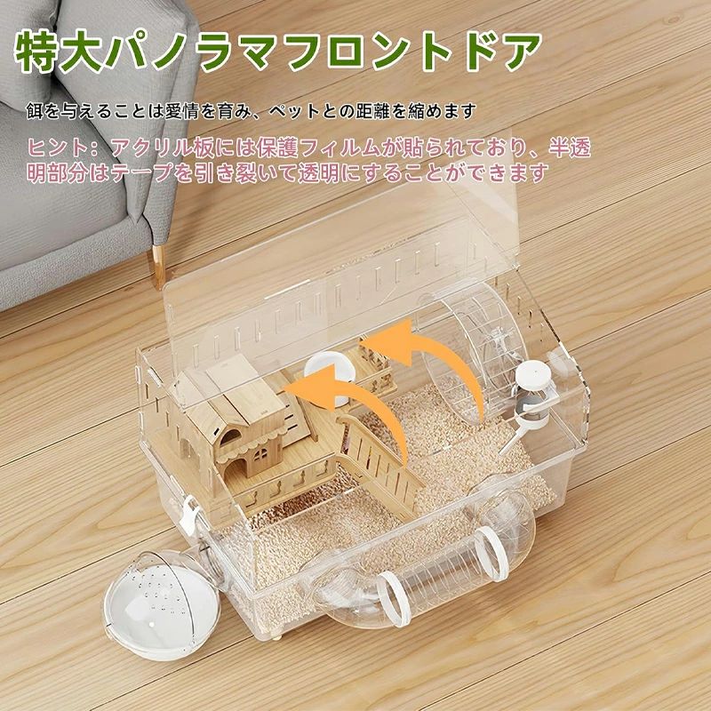 キンクマハムスター ケージ 透明 大型 キンクマ/ゴールデン/ジャンガリアンハムスター アクリルケージ 45CM 2階建て 前開き クリア