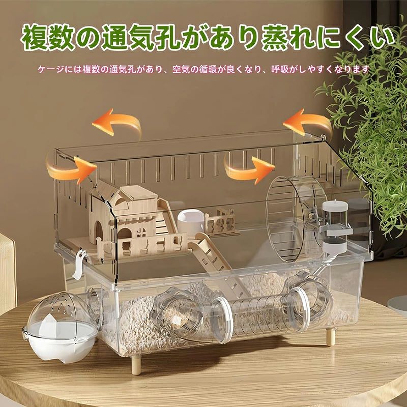 【クリアな透明アクリルケージ】キンクマハムスター ケージ本体は高透過率アクリルを採用! ペットの様子をいつでもチェックでき、可愛らしいハムスターの写真撮影にも最適です。全閉鎖構造で脱走を防止しつつ、科学的に設計された通気孔が適切な空気の流れを保ち、快適な環境を維持します。