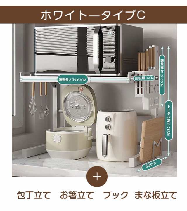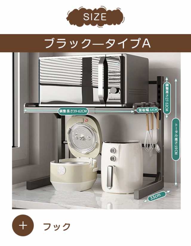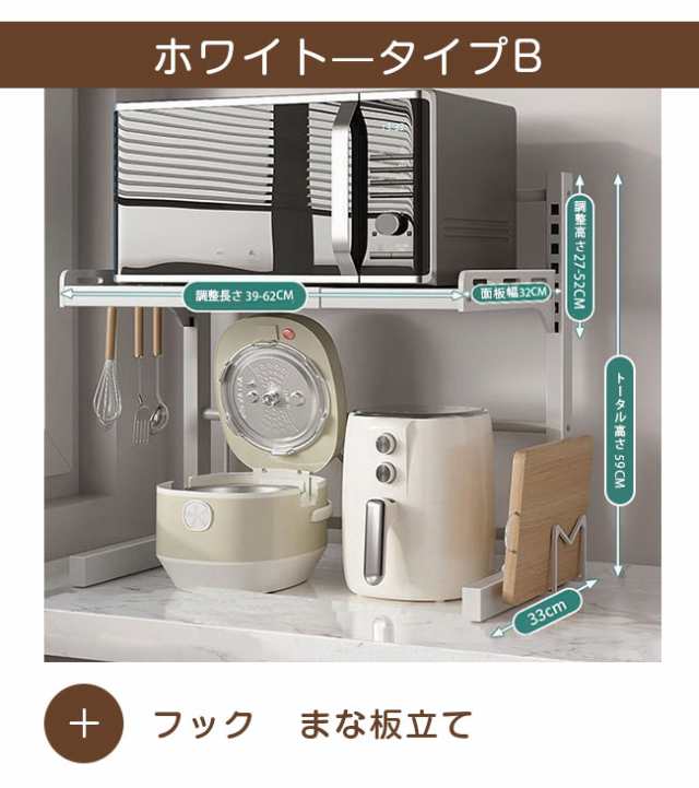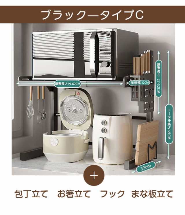 レンジ台 幅39-62cm 高さ27- ホワイト ブラック typeA typeB typeC