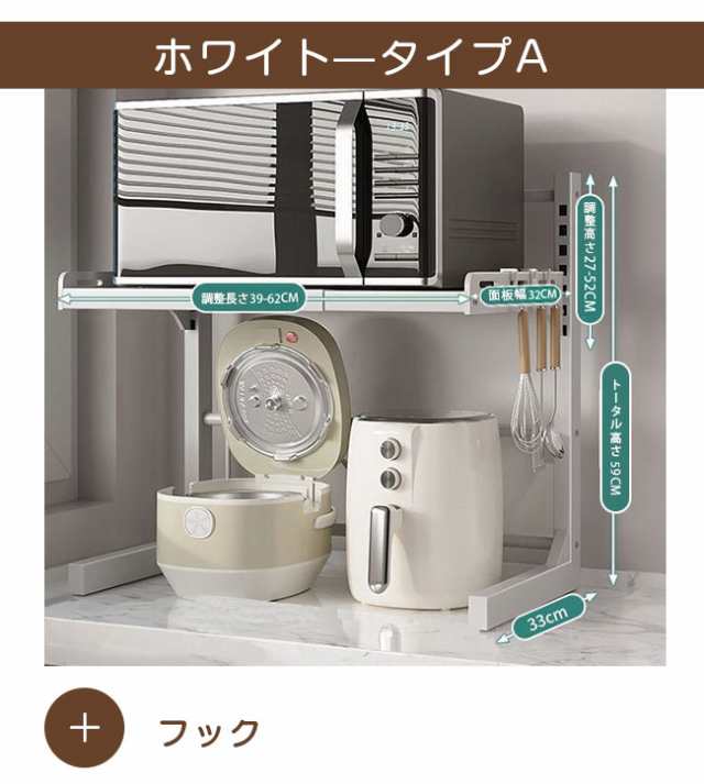 レンジ台 幅39-62cm 高さ27-52cm キッチン ラック レンジラック おしゃれ 伸縮 食器棚 トースター 炊飯器 伸長 北欧 電子レンジ棚 シンプル