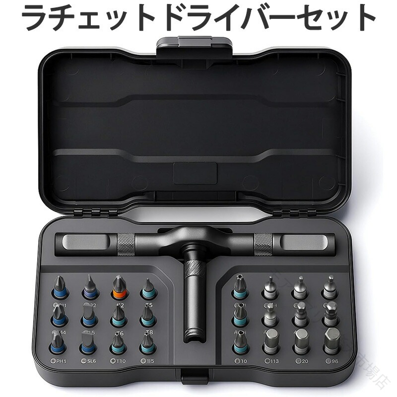 ラチェット ドライバー セット 24in1 S2 鋼製 磁気 マグネット 式 ビット 24 個 磁力 交換 差替 マイナス 自転車 家庭用 PC プラ 修理