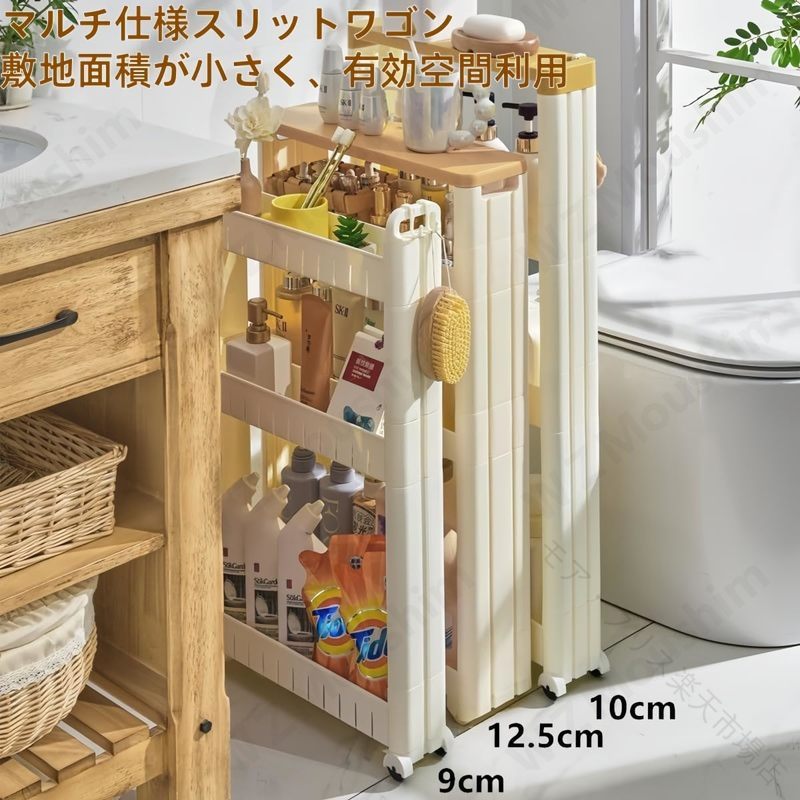 スリムワゴン キャスター付き 隙間収納 幅7~14cm超薄設計 2段3段4段5段調節可能 キッチンラック 隙間ラック バスケットラック 細い棚 厨房収納 キッチンワゴン ワゴン キッチン収納 北欧風