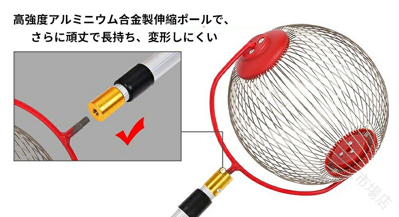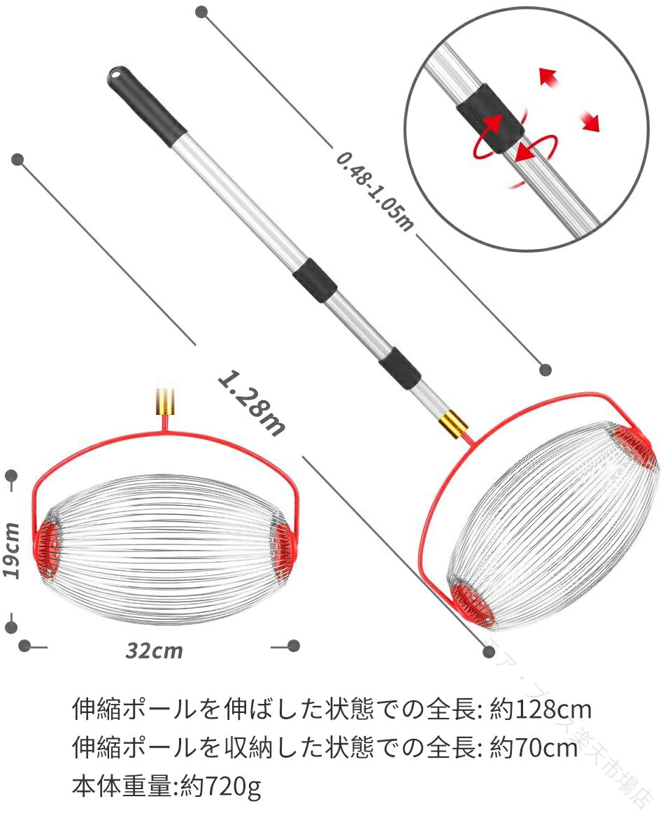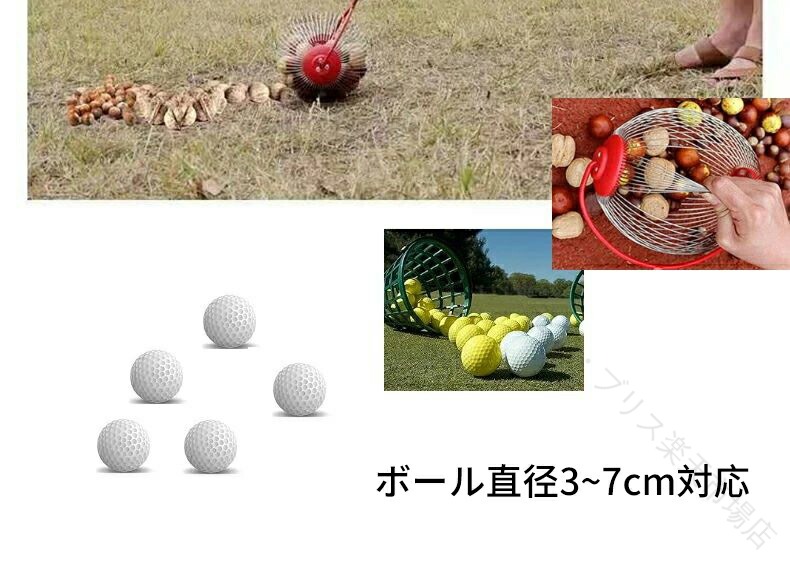 ゴルフ ボールピッカー ボール回収器 卓球 テニスボール ゴルフボール 回収機 キャッチャー ボール拾い 栗 クルミ 収穫 ガーデン 伸縮ハンドル付芝生の上を掃除機やモップのようにコロコロ転がすだけで、ゴルフボールなどを簡単に回収できる便利なボール回収器です。中腰になる必要がなく、腰やひざへの負担を軽減できるため、高齢の方や長時間の作業にもおすすめです。直径3~7cmのボールや木の実に対応し、ゴルフボールはもちろん、テニスボール、卓球ボール、栗、クルミなども楽々回収可能。地面に転がすだけで散らばったボールが中に入り、回収後はワイヤー部分を開いて簡単に取り出せます。伸縮式のハンドルは、お好みの長さに調整可能で、使用者の身長や用途に合わせて快適にお使いいただけます。ゴルフ練習場、グリーン、家庭の庭など、さまざまな場所での球拾い作業を効率化する便利アイテムです。球体部分には丈夫でサビに強いステンレス素材を使用し、伸縮バーには軽量で扱いやすいアルミ合金を採用。持ち手と本体はセパレート式で、洗浄や収納も簡単。栗のイガから手を守りながらの収穫作業にもぴったりです。※取扱説明書は付属しておりません。