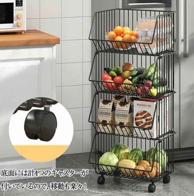 キッチンワゴン キャスター付き 3段 ランドリーワゴン バスケット 4段 ワゴン クローゼット 収納 棚 パントリー 収納ケース 新生活 衣料収納 押入れ収納 衣装ケース