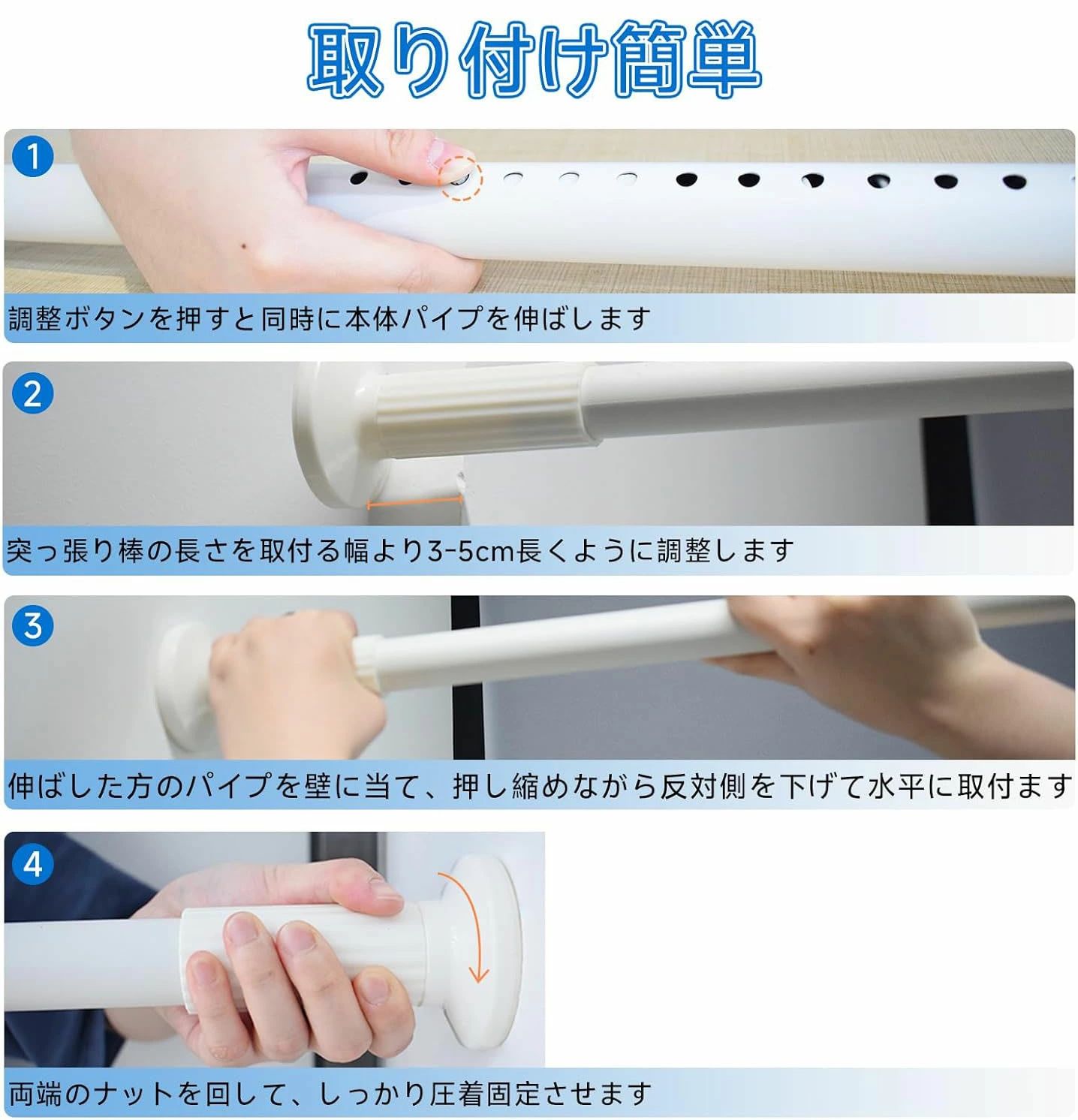突っ張り棒 強力 92~430cm つっぱり棒 耐荷重10~30kg組立簡単 調節簡単 ドリル不要 超強力伸縮棒 屋外 物干し竿 洗濯干し 錆びない室内