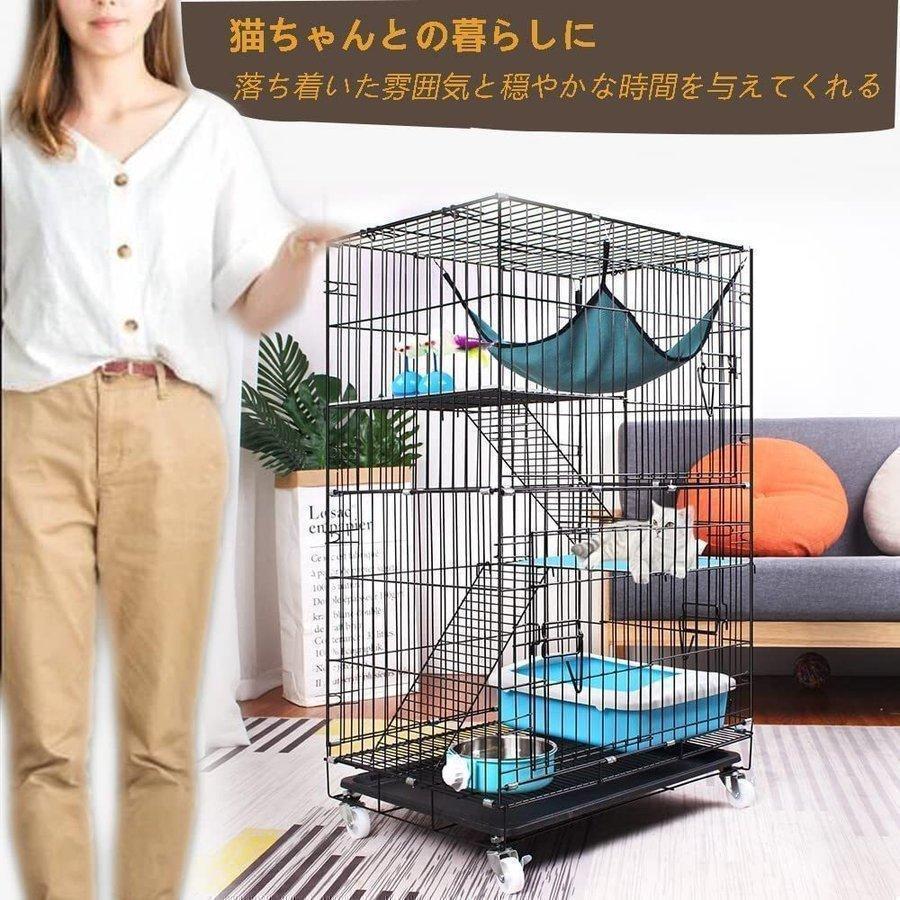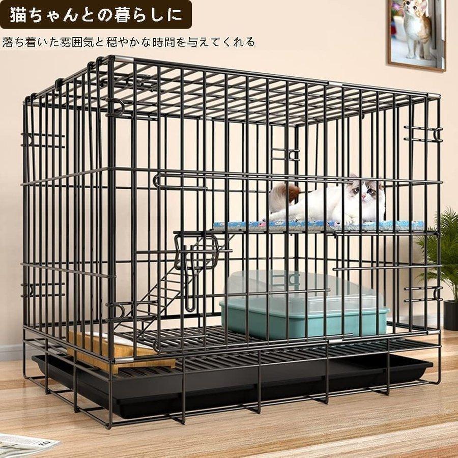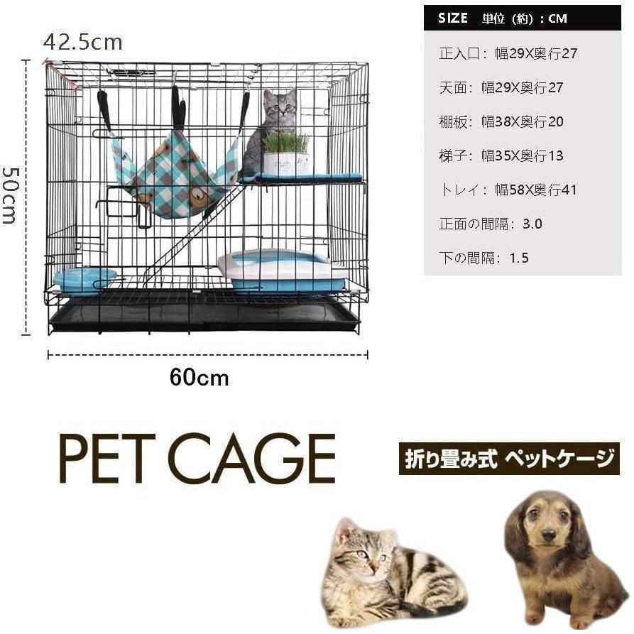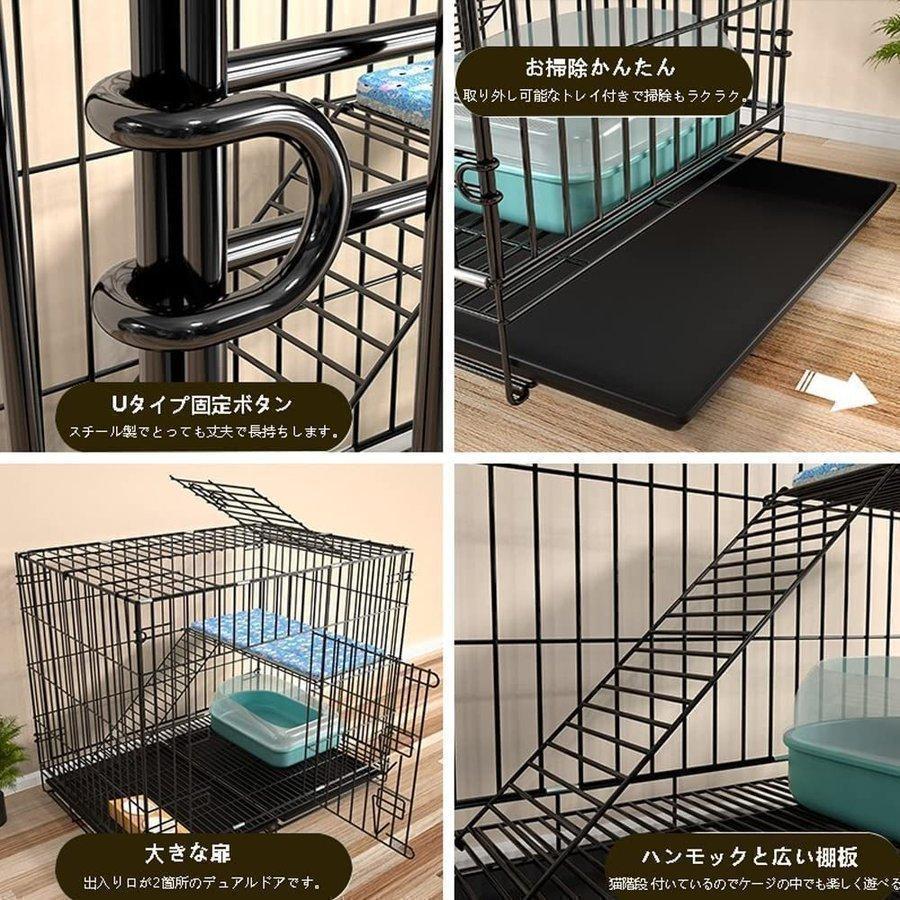 猫用ケージ 大型 多頭飼い キャスター 付き ステップ台2段 脱走防止 簡単組み立て 室内用 掃除しやすい 折りたたみ ドア付き ペット用品
