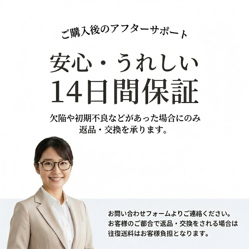 出荷前に全て検品を行っておりますが、万が一商品に不具合があった場合は、お問い合わせフォームまたはメールよりご連絡頂けます様お願い申し上げます。速やかに対応致しますのでご安心ください。