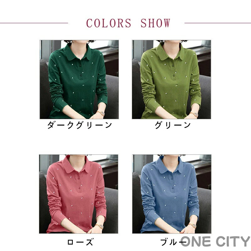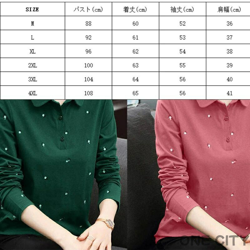 ポロシャツ レディース Tシャツ 長袖 トップス ポロシャツ 通販 グリーン ローズ ネイビー M L XL 2XL 3XL 4XL