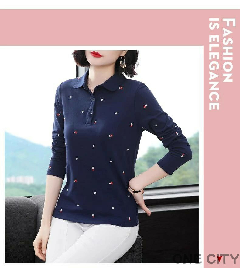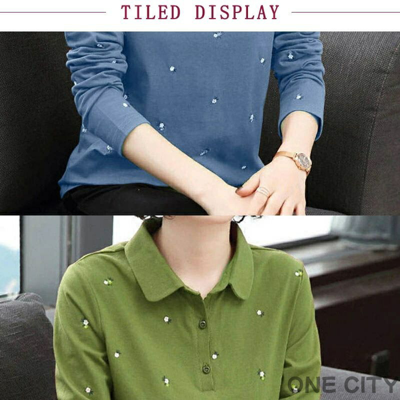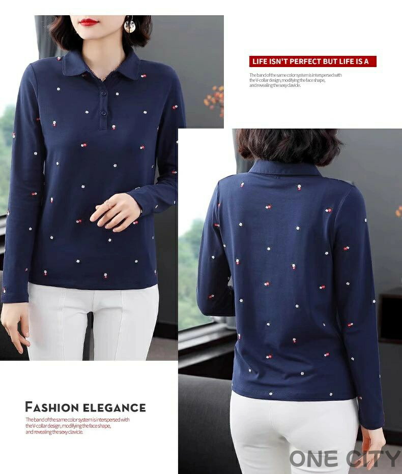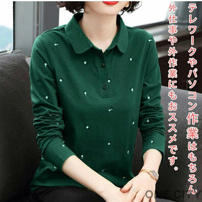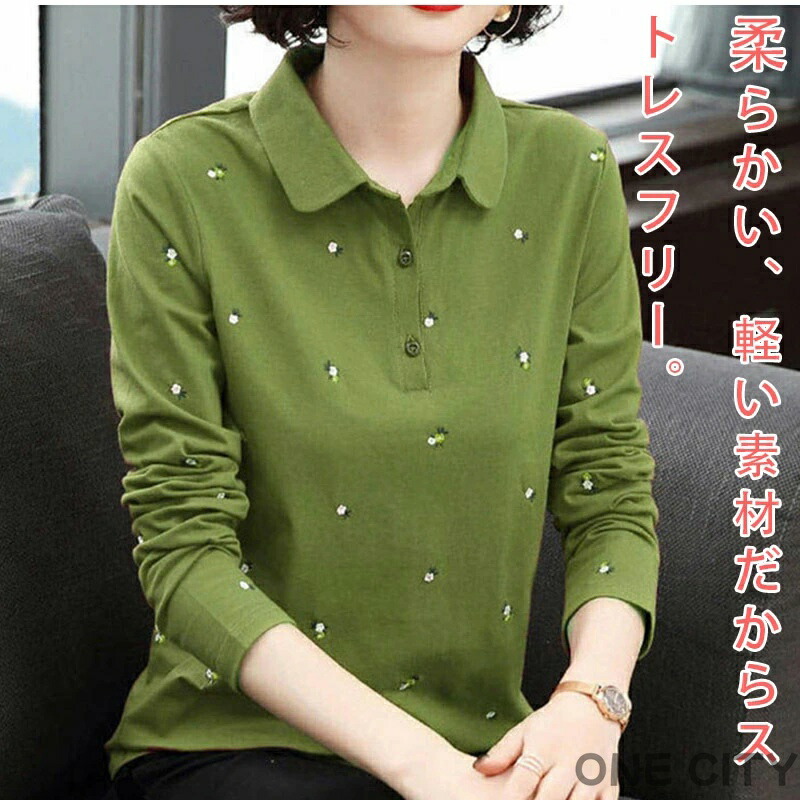ポロシャツ レディース Tシャツ 長袖 刺繍 襟付き 体型カバー ボタン付き シンプル 涼しい スポーツ 柔らかい カジュアル きれいめ オシャレ トップス