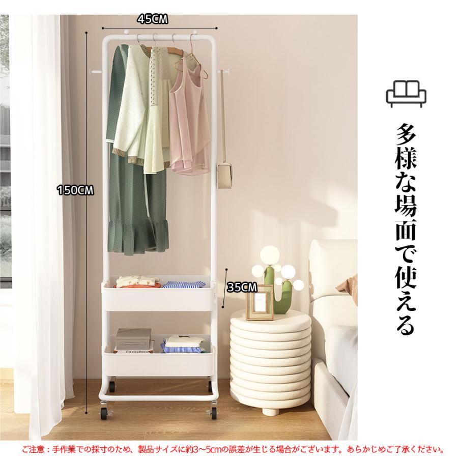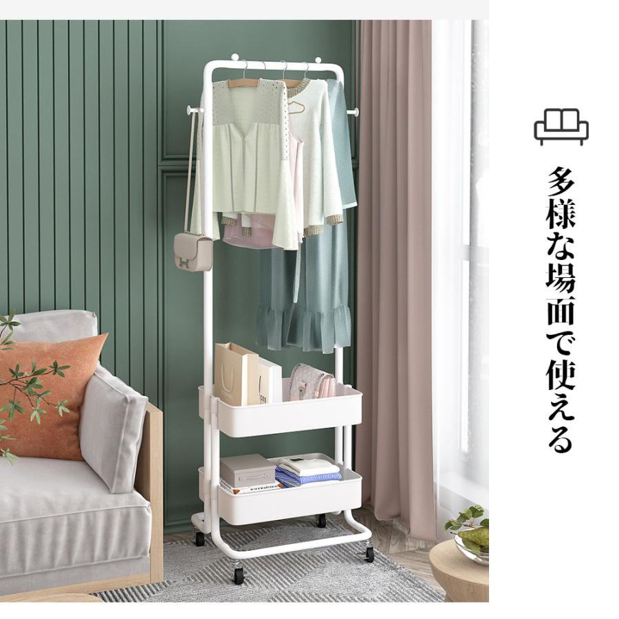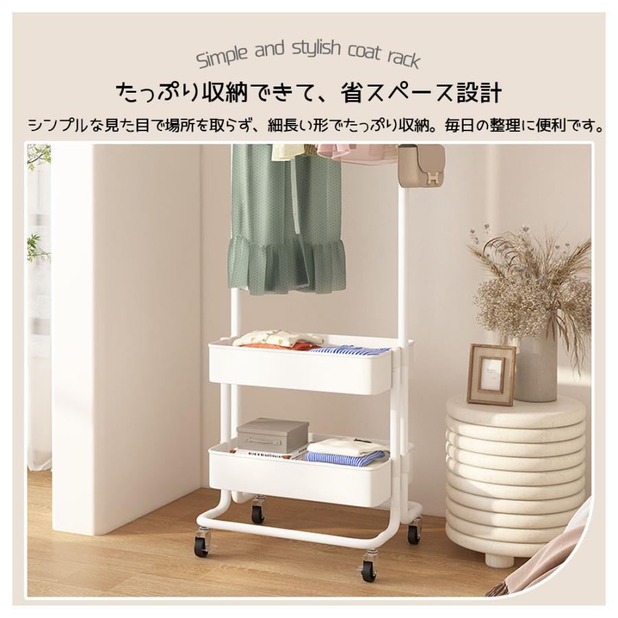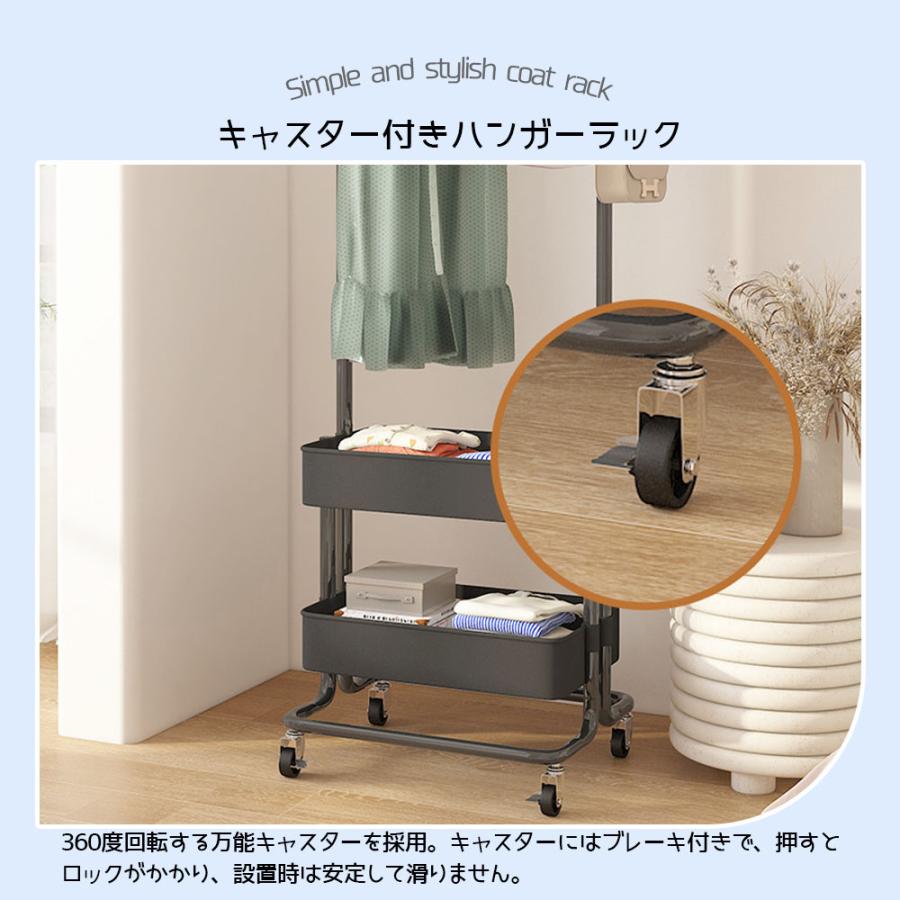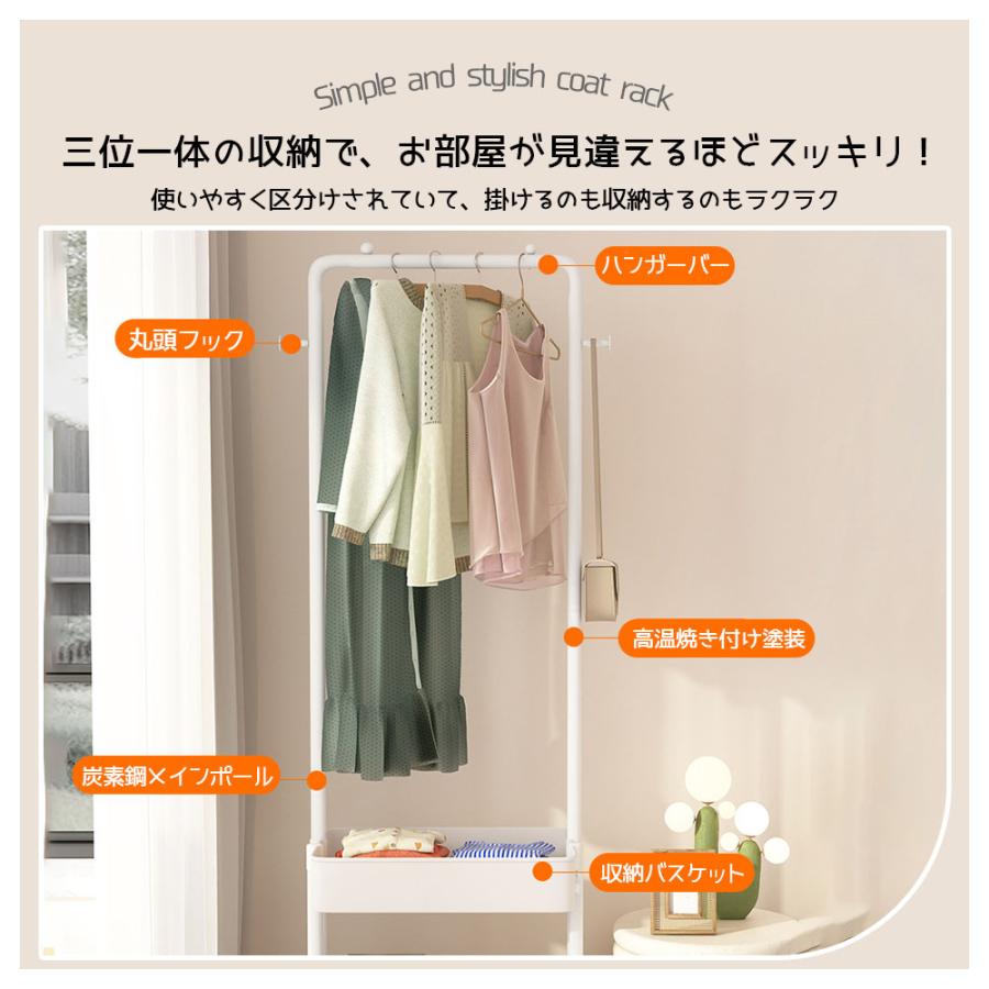 ハンガーラック キャスター付き 省スペース シングル 小物収納 収納 ラック 大容量 移動可能 収納バスケット フック付き 衣類収納 雑物収納 一人暮らし 組立簡単