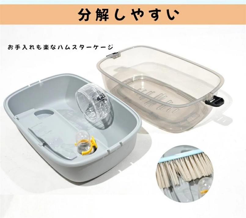 セキュリティ機能 製品にはしっかりとしたロック機能が搭載されており、ハムスターが自力でケージから脱走するのを確実に防ぎます。これにより、飼い主が不在の時でも安心して飼育することができます