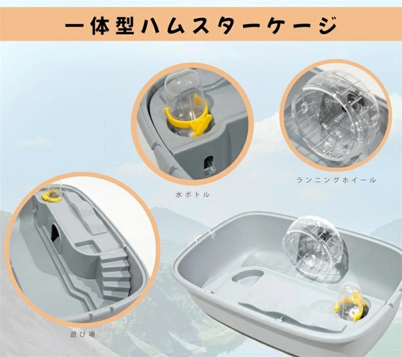 ハムスター飼育セット 製品にはウォーターボトルとランニングホイールが付属しており、一つでハムスターを飼うのに十分な機能を備えています。