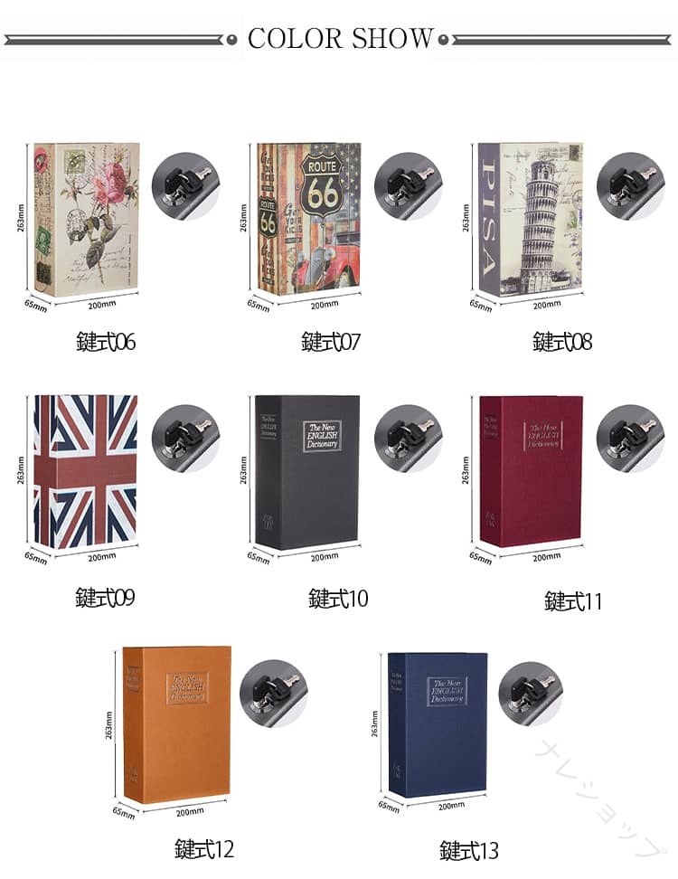 隠し 金庫 ブック型 本型金庫 小型 01 02 03 04 05 06 07 08 09 10 11 12 13 S(鍵式) M(鍵式) L(鍵式) S(ダイヤル式) M(ダイヤル式) L(ダイヤル式)