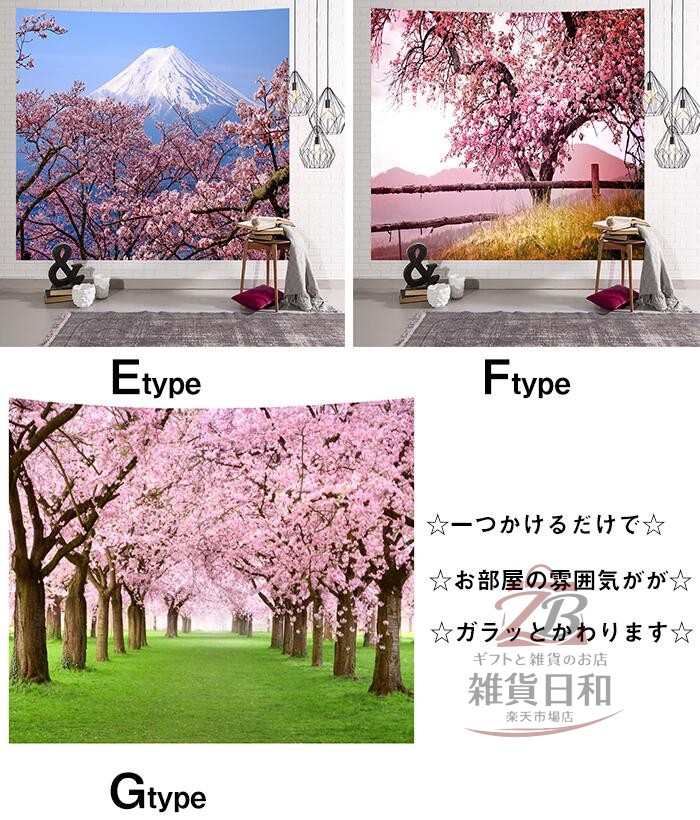 タペストリー 花柄 桜 風景 背景布 約150x100CM 約150x130CM 約150x150CM 約150x200CM A B C D E F G