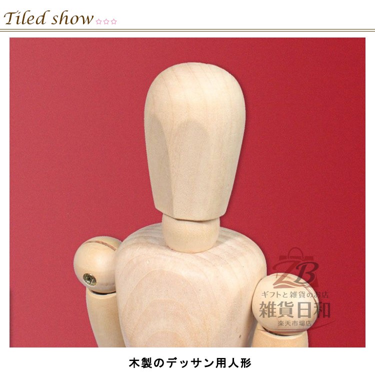 木製のデッサン用人形。首、手、足、肩などの主要関節が可動し、様々なポーズを取らせることができます。台座付きで、ジャンプなどの空中ポーズも作成可能です。インテリアとして飾ったり、デッサン練習のモデルとしてお使いいただけます。