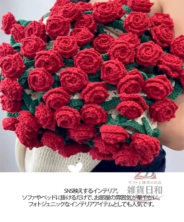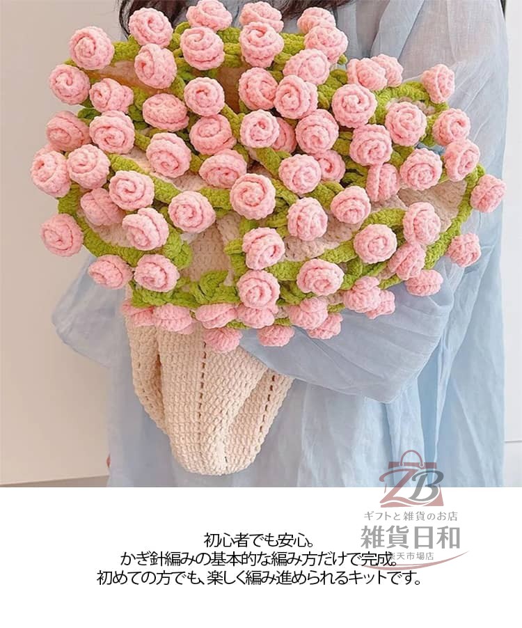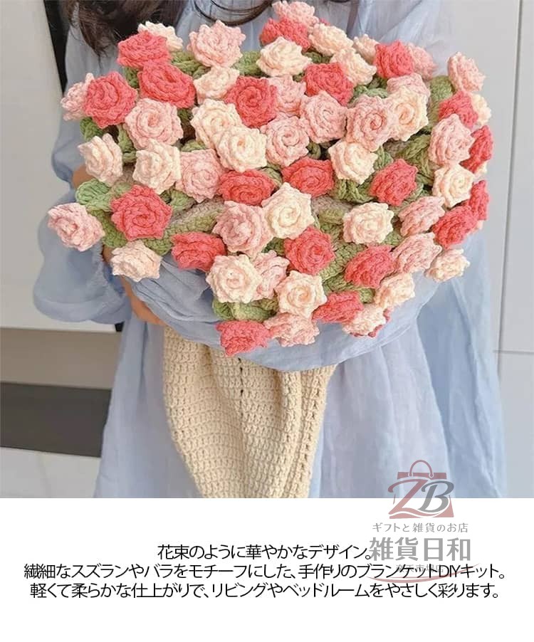 花束ブランケット かぎ針編みキット 手作り 未完成品 初心者向け 柔らかい 毛糸 DIY ハンドメイド バラ フラワー 編み物 セット 手芸 ギフト インテリア かわいい 編み 材料 誕生日 薔薇