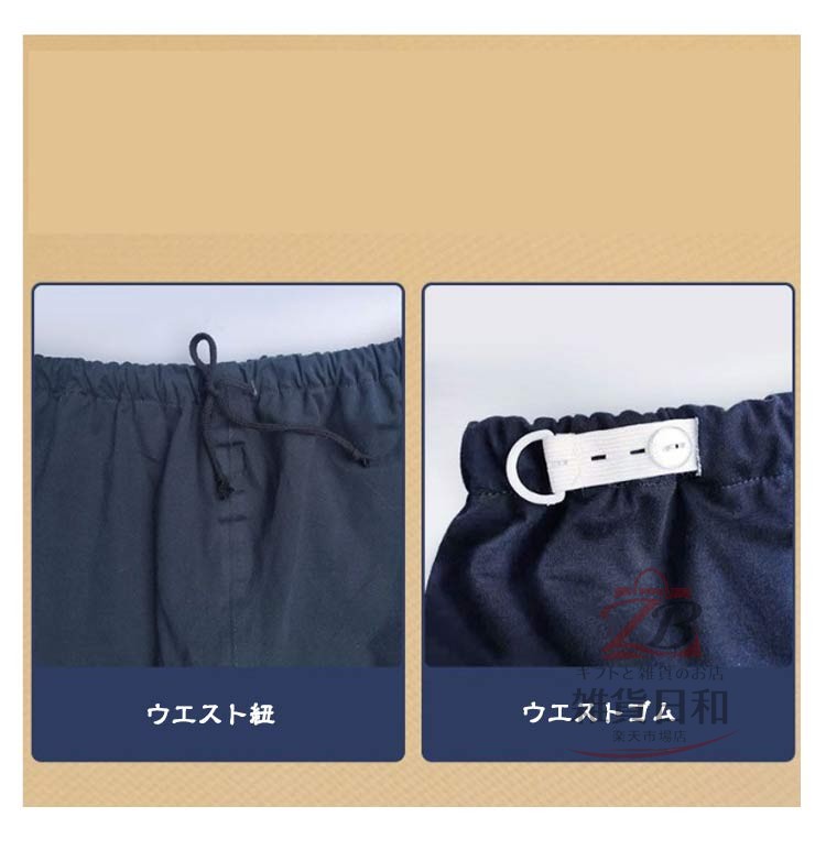 ウエストの部分には、リング付きゴム・ドローコード仕様でしっかりフィットします。体型問わず、心地よく利用できます!