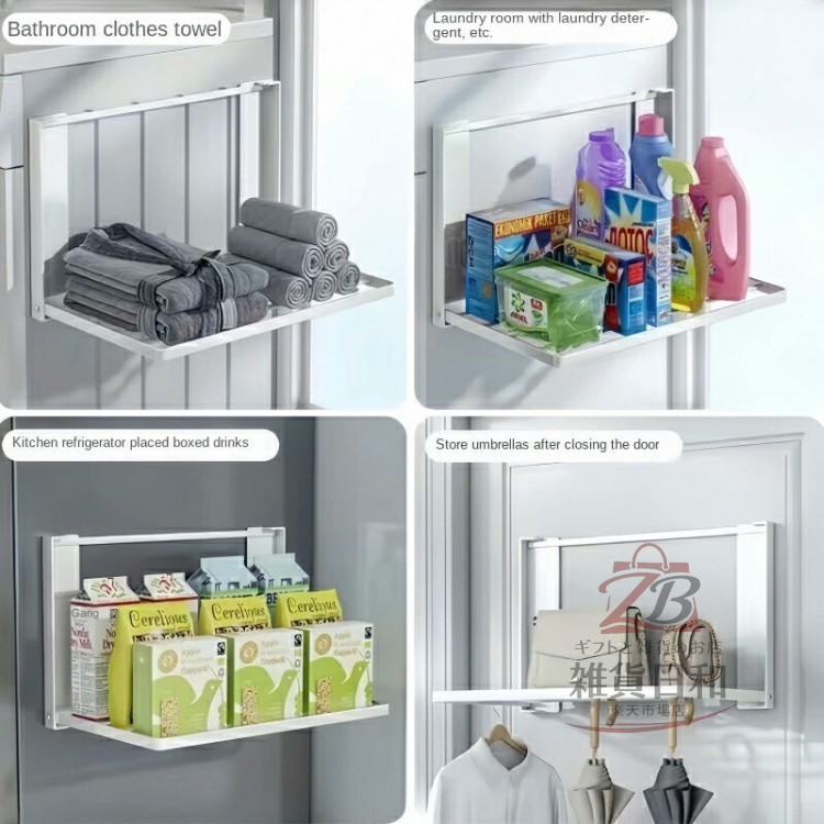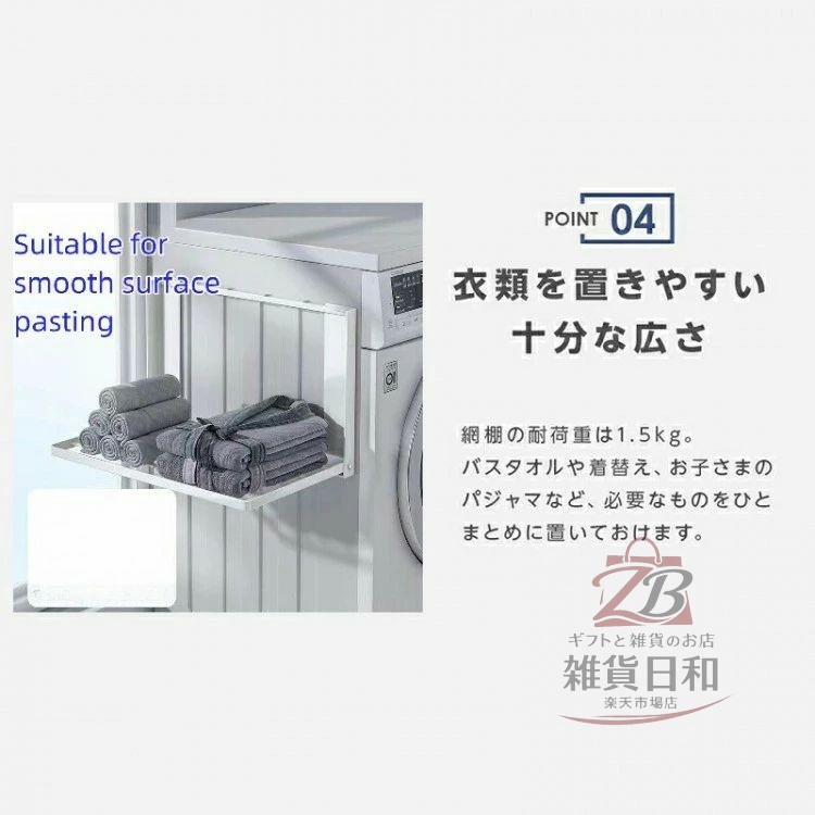 洗濯機横マグネット折り畳み棚 省スペース収納 脱衣所ランドリールーム 衣類置き場 コンパクト設計 バスタオル