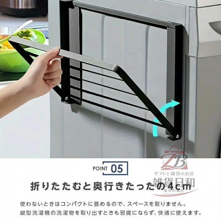 折りたたむと奥行きたったの4cm。使わないときはコンパクトに畳めるので、スペースを取りません。縦型洗濯機の洗濯物を取り出すときも邪魔にならず、快適に使えます。