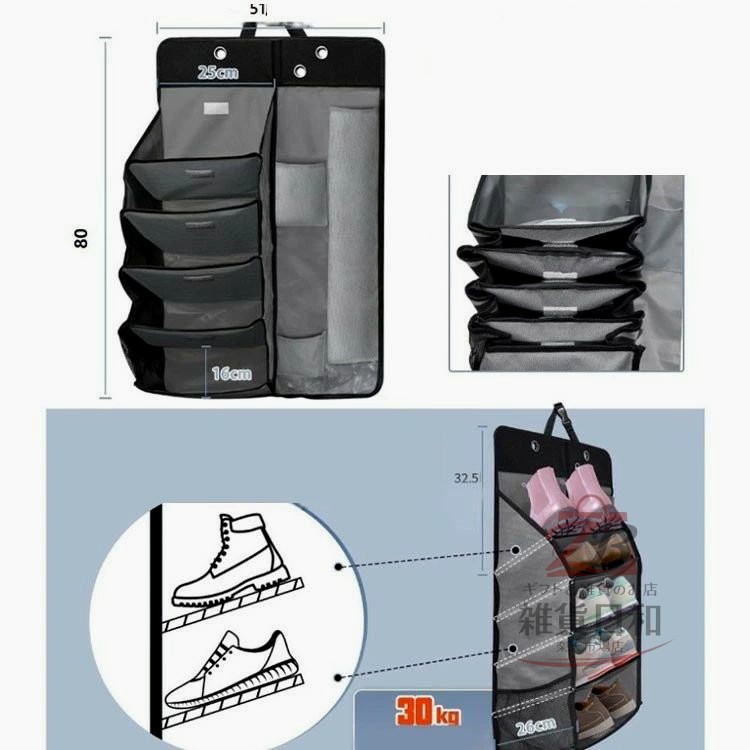 車用シューズラック 傘入れ 5段 折りたたみ式 車内収納整理 ハイエース車 シートポケット 多車種対応
