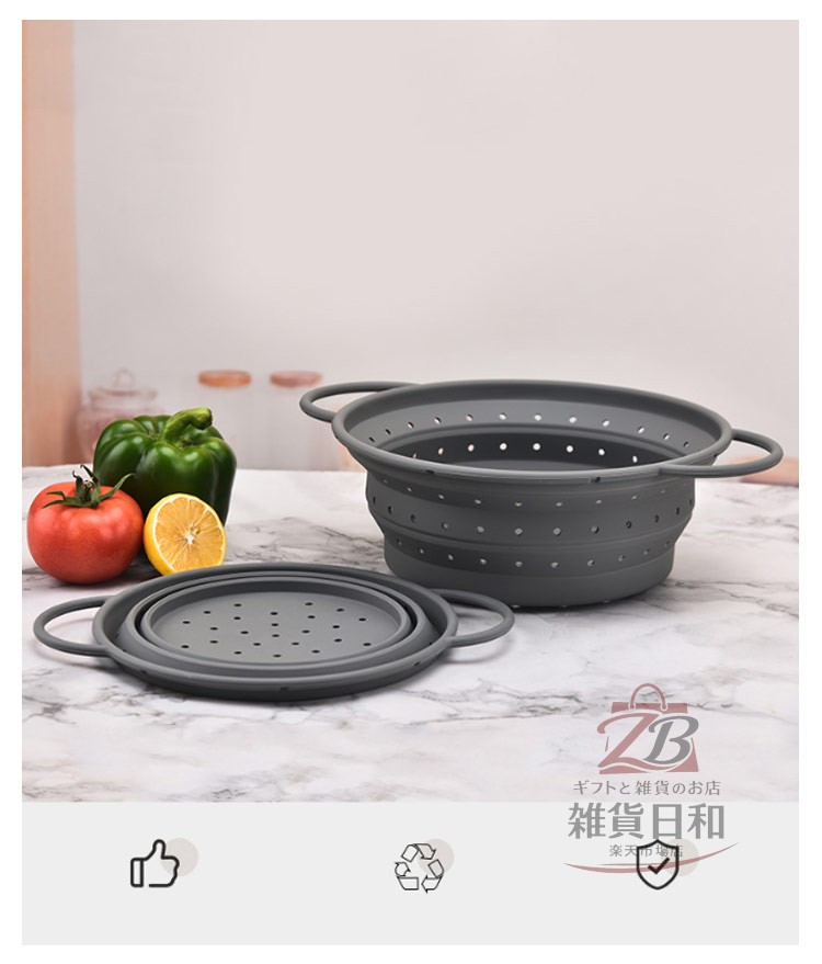 高さが約1/3に折りたためて省スペースで収納しやすい、シリコンボウル&ザルセット。取っ手も厚みがあり安心してしっかり持てる仕様なので出し入れも楽々。230℃~-30℃まで耐えられるから電子レンジやオーブン、冷凍庫での使用が可能。吊り下げ収納が可能。高足形状だから水切りも優れている。食器洗い機にも対応。軽くて携帯便利なので、アウトドア活動にも洗いザルや容器としても使えます。