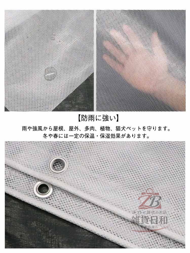 雨や強風から屋根、屋外、多肉、植物、猫犬ペットを守ります。冬や春には一定の保温・保湿効果があります。