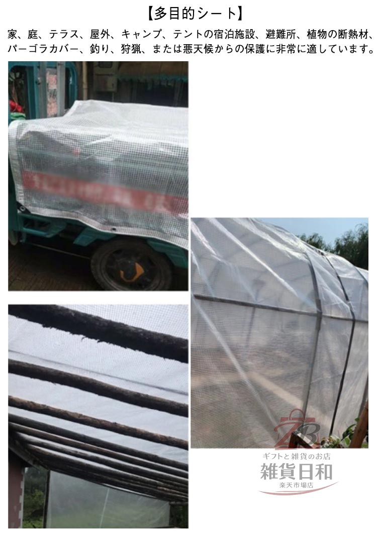 防水シート 半透明 両面防水 撥水シェード 糸入り 日除け 厚さ0.48mm 雨よけシート 温室カバー 保護カバー ビニールシート 透明カーテン 屋外 屋根 防雨 防風 防寒 結露対策 花粉症対 防塵