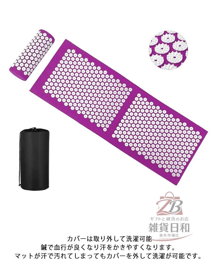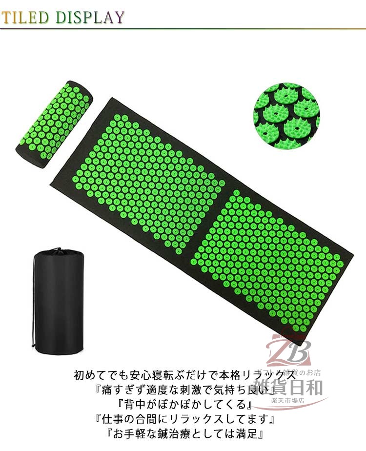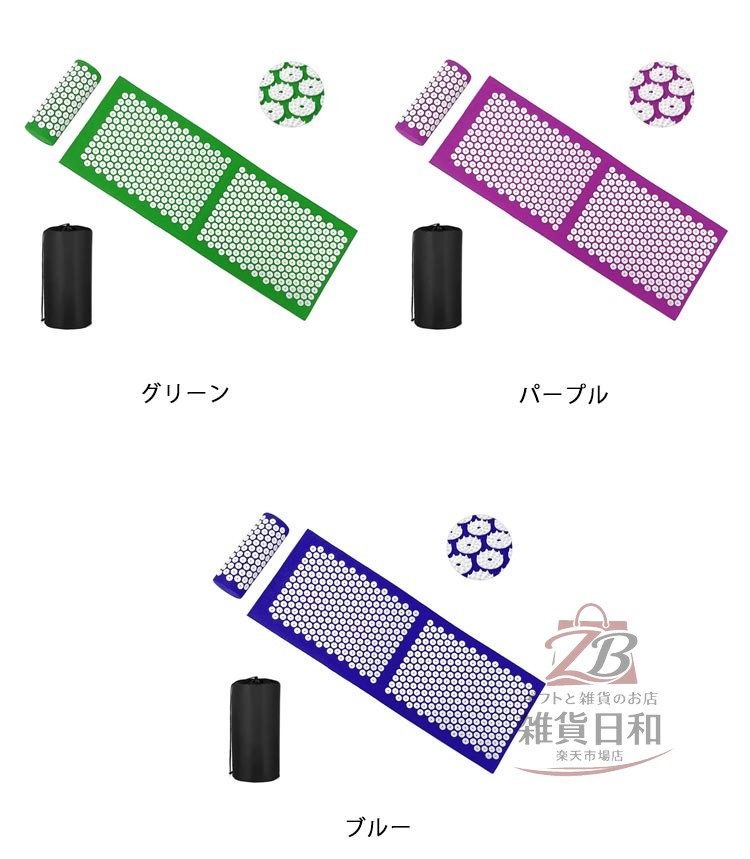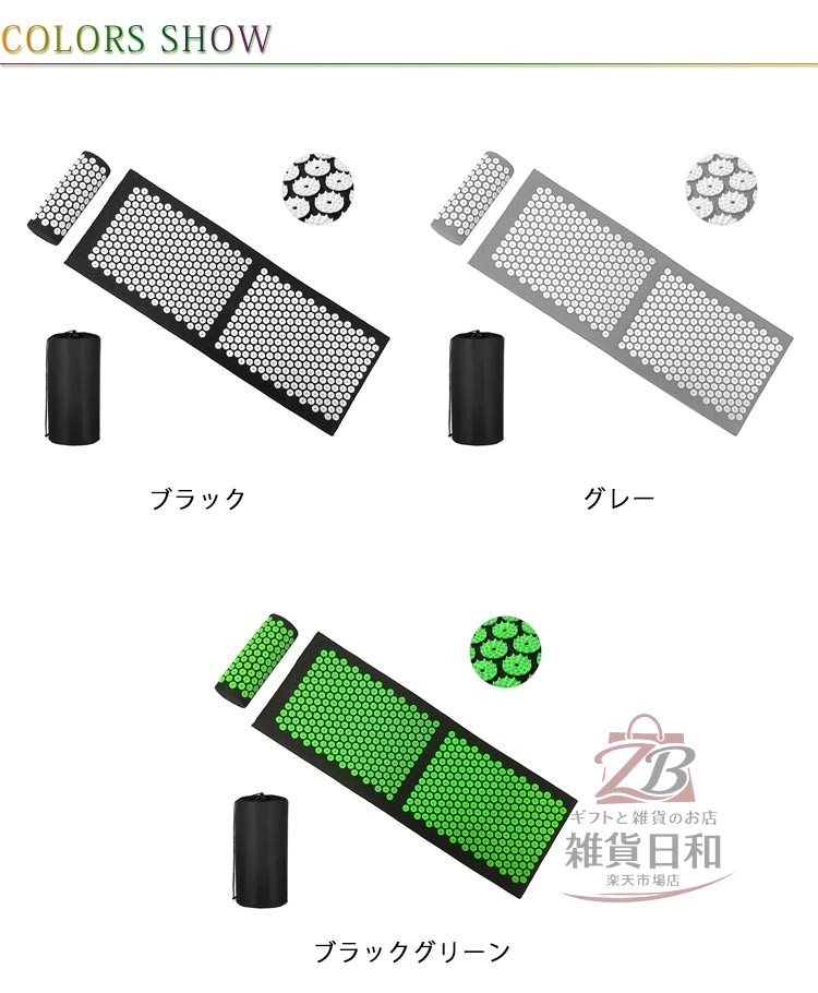 指圧マット 枕セット 収納バッグ付き グリーン パープル ブルー ブラック グレー ブラックグリーン