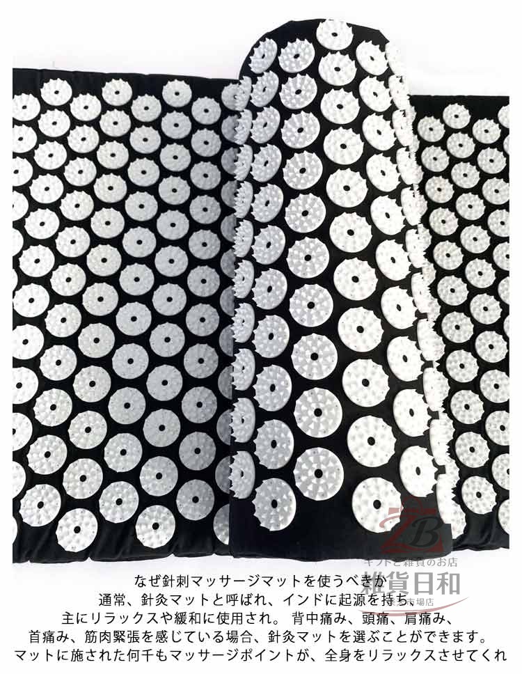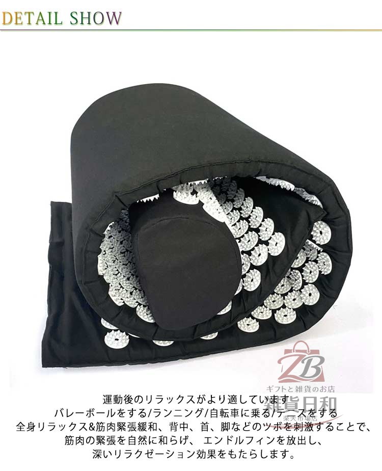 折り畳み式で収納ポーチ付きの指圧マットと枕のセット。大判サイズ128*42cm。寝転ぶだけで本格的なリラックスが得られ、適度な刺激で背中の凝りや疲労を和らげます。