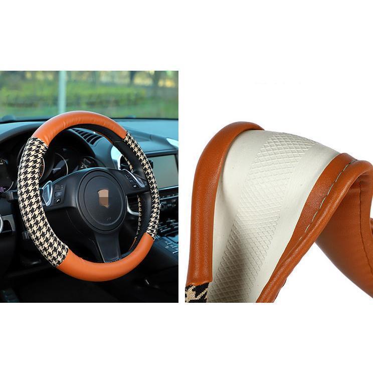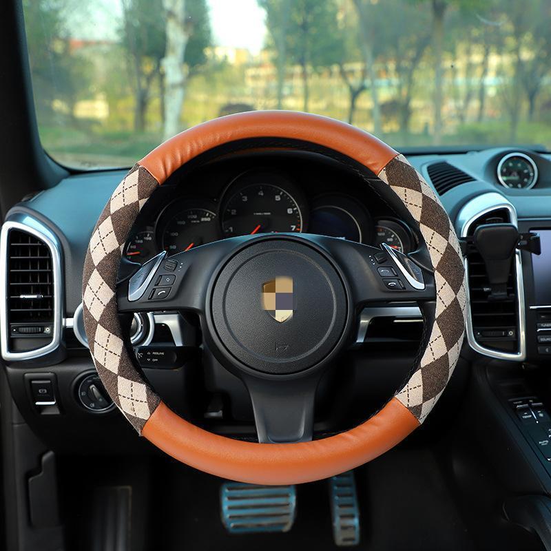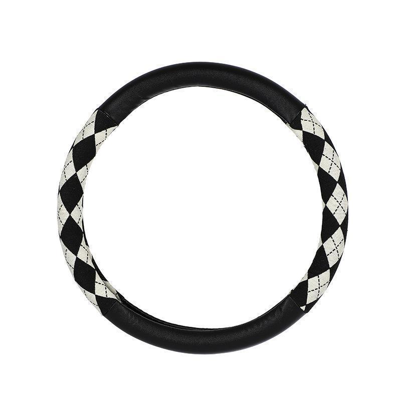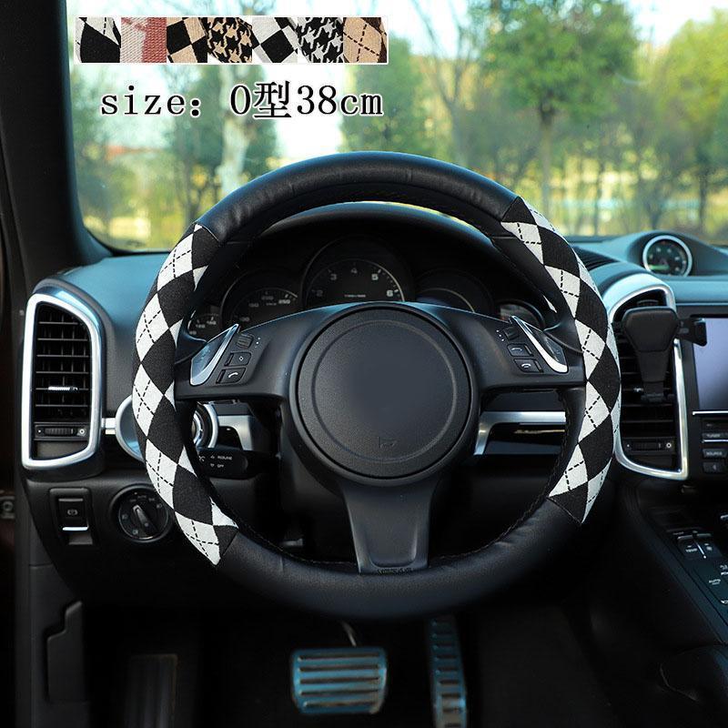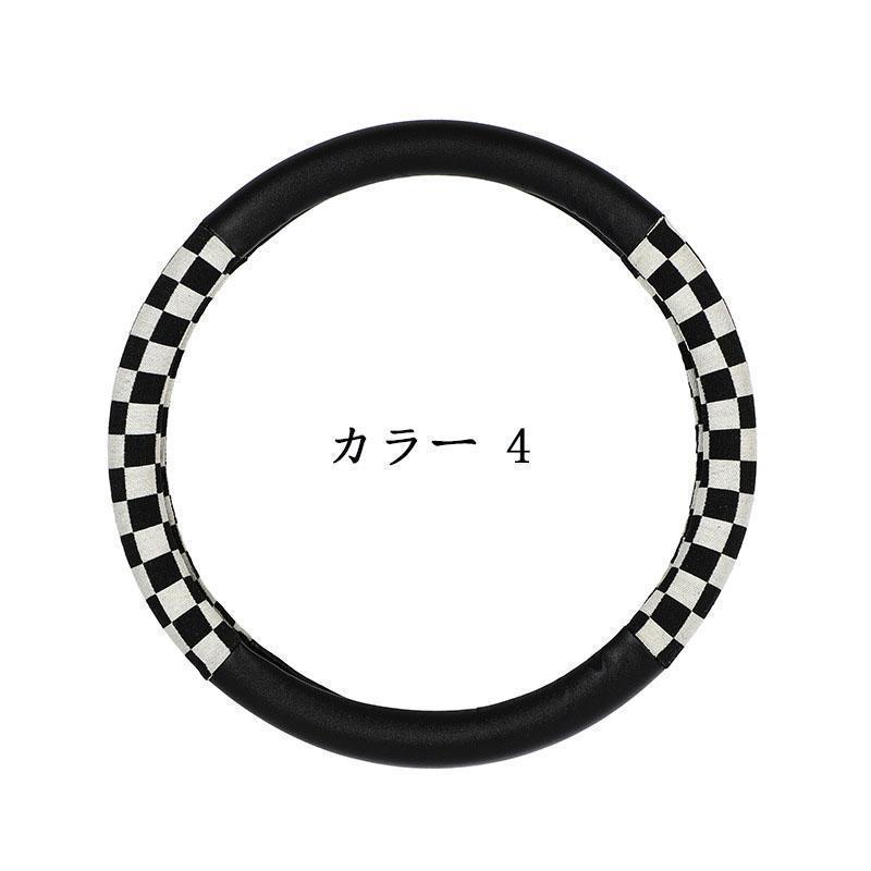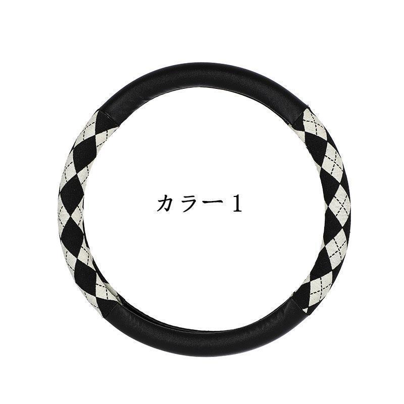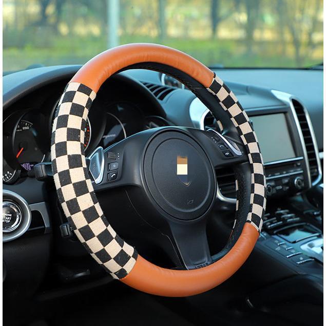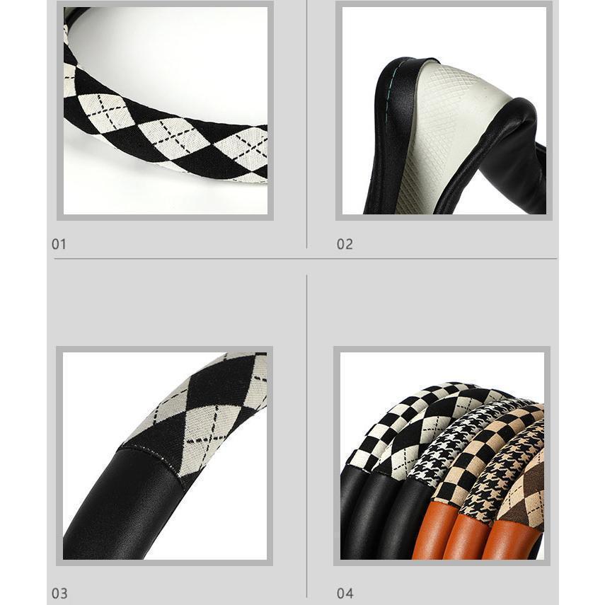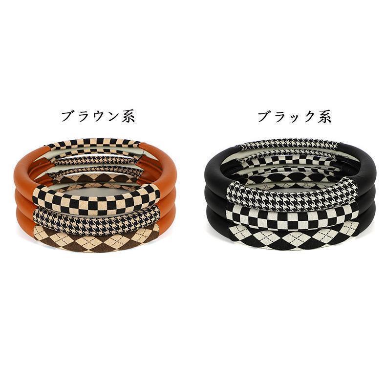 ハンドルカバー ステアリングカバー チェック柄 O型 軽自動車 普通車 乗用車 トラックおしゃれ 男女兼用 ドライビング 38cm PU 可愛い