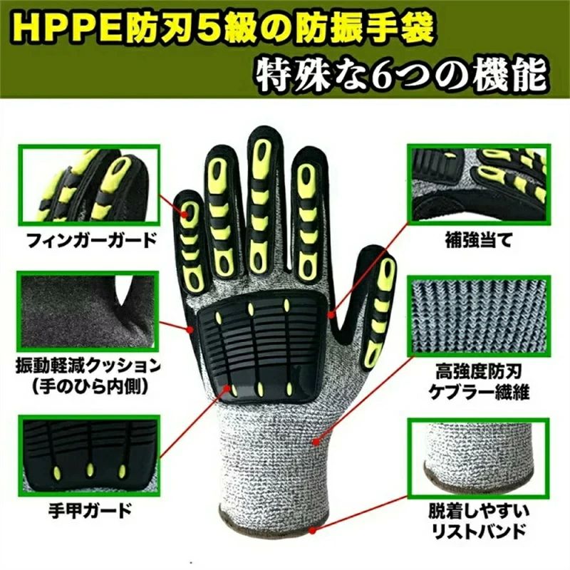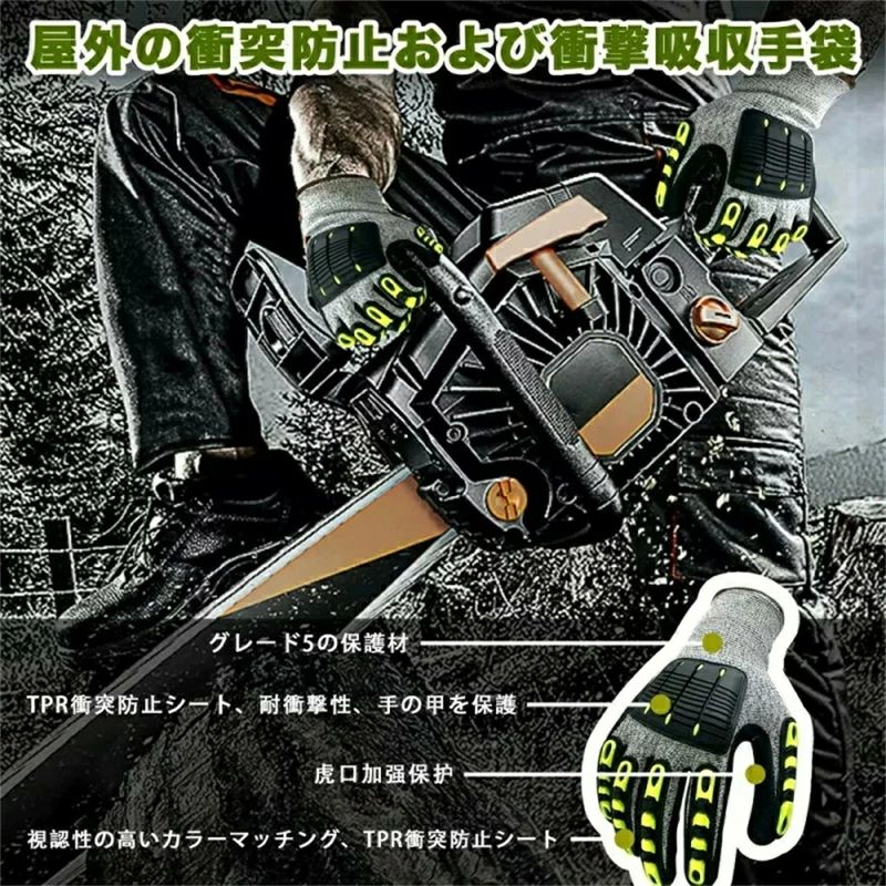 チェーンソー手袋 防振手袋 メカニックグローブ 掌当て付き 背抜き 作業手袋 耐振動 振動緩和 HPPE防刃5級 タッチパネル対応 バイク 3D立体 滑り止め 草刈り機防護 防護用 林業 チェー