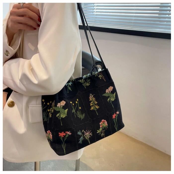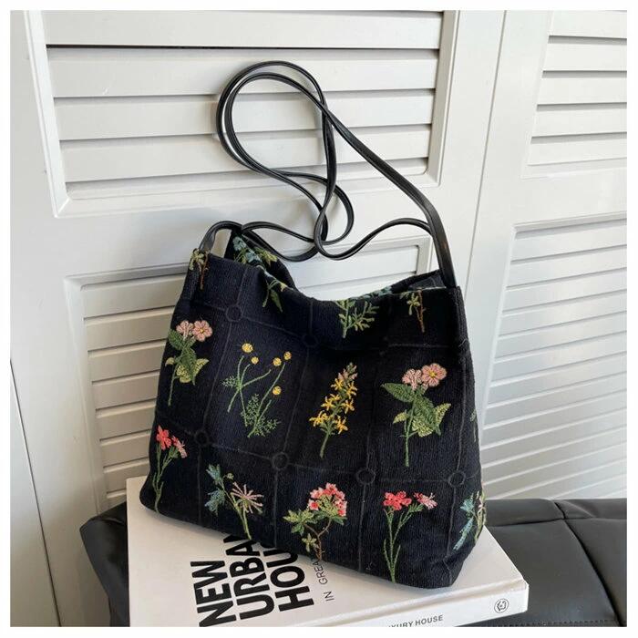 ショルダーバッグ キャンバスバッグ レディース エコバッグ 花柄 刺繍 斜め掛けバッグ 肩掛け オシャレ 通勤バッグ お仕事バッグ 通学 大人可愛い 軽量 ワンショルダー 軽い 柔らか カバン 買い物 シンプル カジュアル 普段使い 母の日 プレゼント ショルダーバッグ トートバッグ レディース キャンバス 花柄"