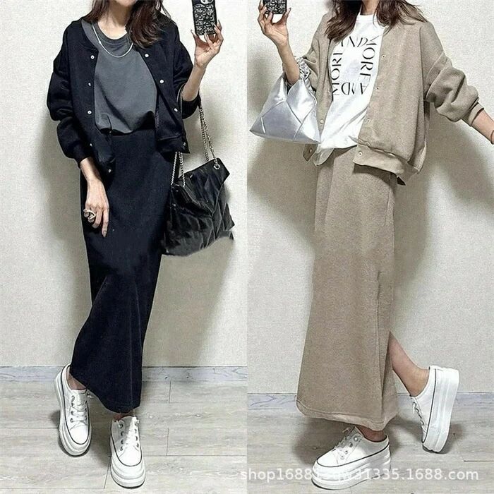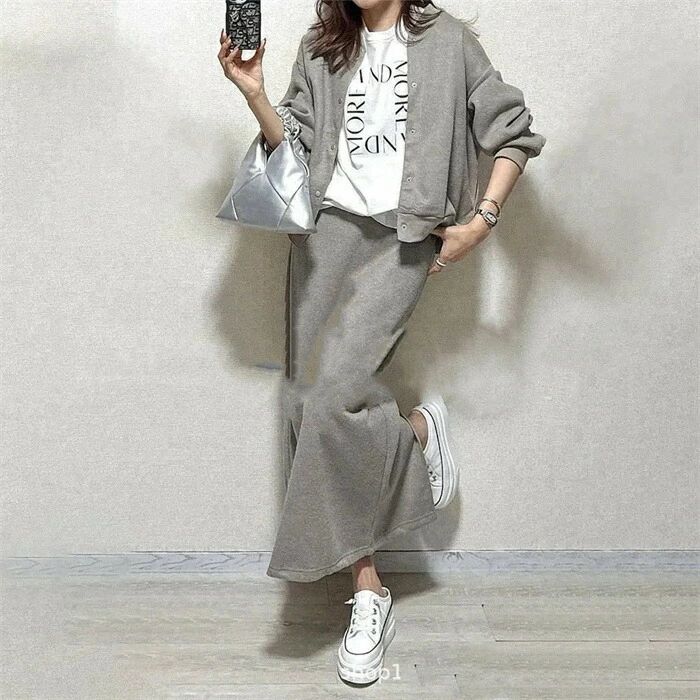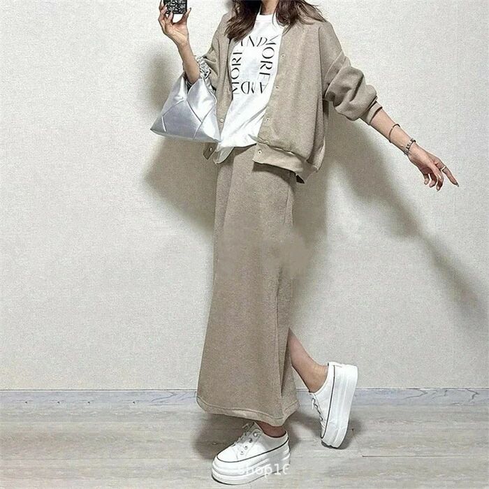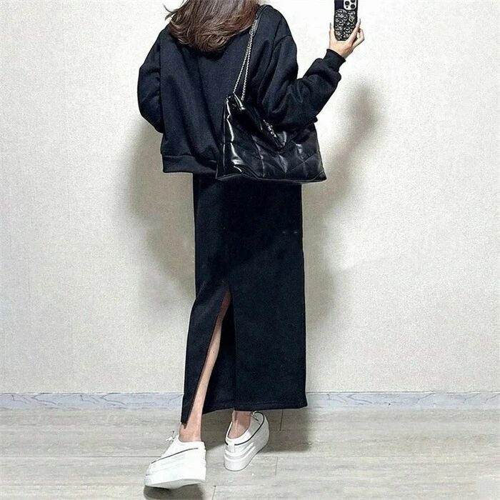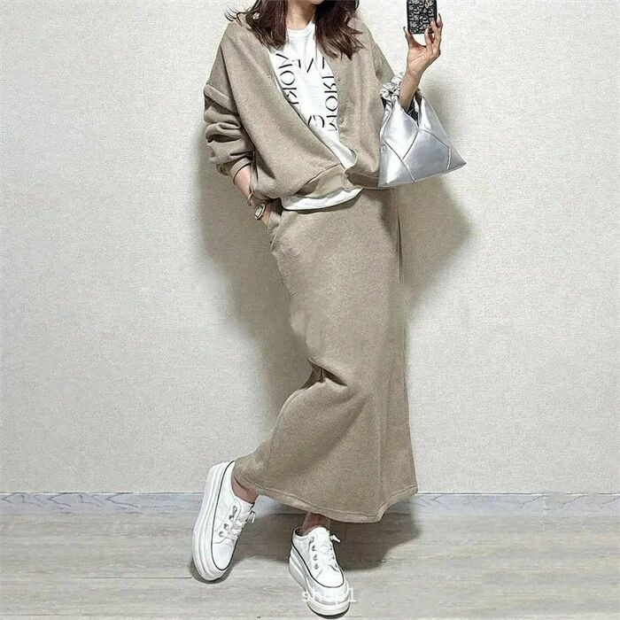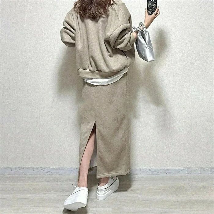 セットアップ レディース 2点セット スカート パーカー スウェット 春 秋 長袖 キレイめ 上下セット ロング 無地 大人 カジュアル バックスリット 着痩せ