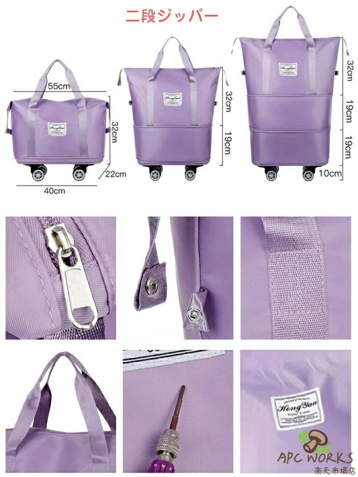 【生地素材】高密度のオックスフォード布生地で作られ、傷がつきにくく、丈夫で耐久性があります。 国内旅行やイベント、お祭りなどの荷物の持ち運びにおすすめのサイズです。 2輪キャスターを採用しており、重いものも楽に運ぶことができます。