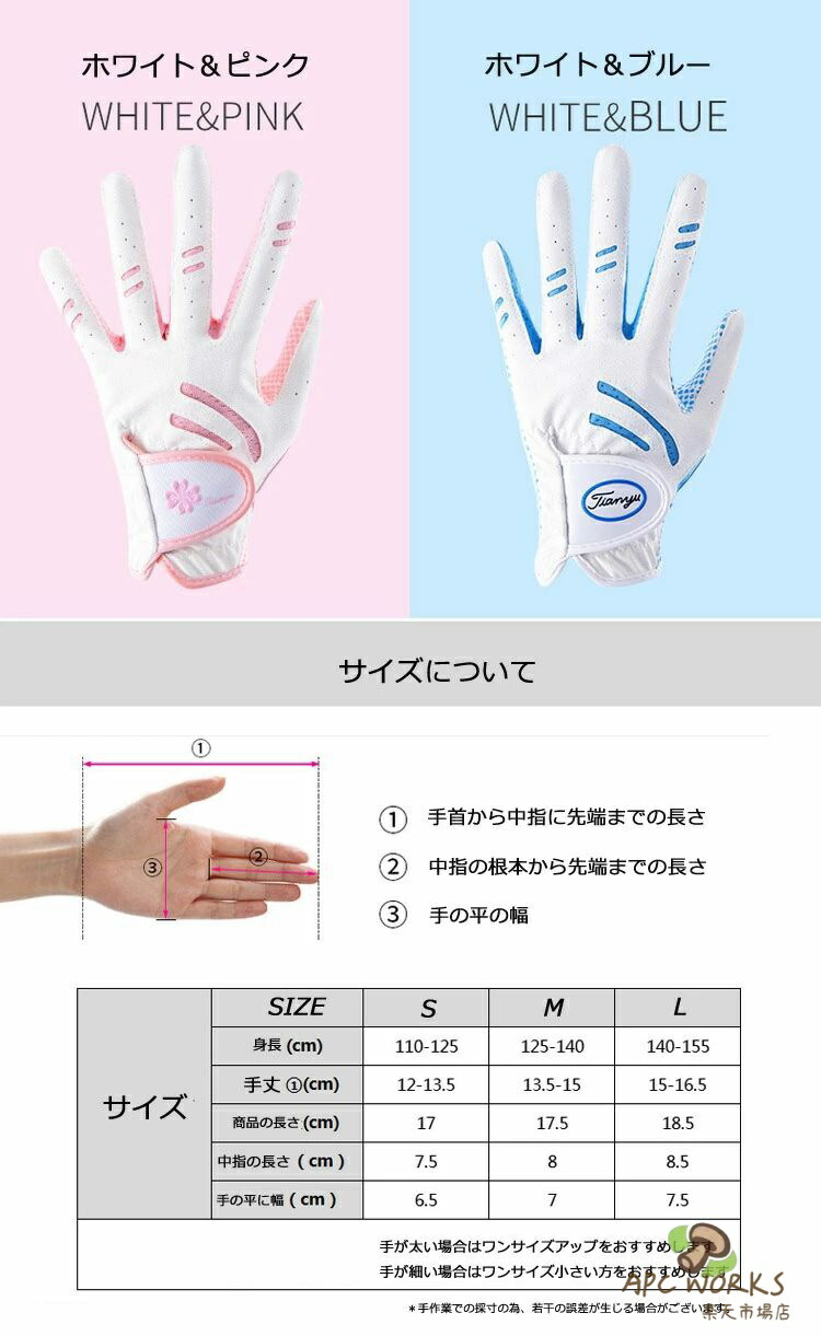 ゴルフグローブ 子供用 両手用 女の子 ゴルフ グローブ 続々入荷中 ホワイト&ブルー ホワイト&ピンク S M L