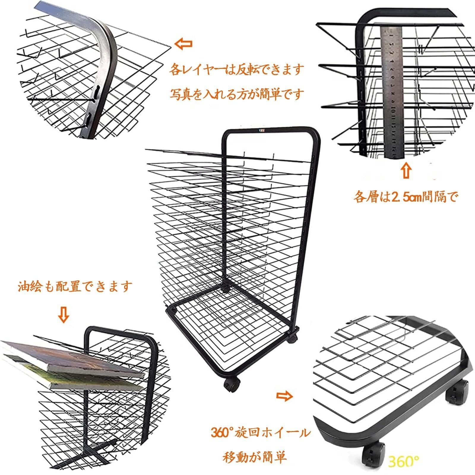 【乾燥棚簡単に組み立て】ワイヤー棚は2.5cm間隔です。 塗装イーゼルはスタンディングラックとして使用できます。さまざまなサイズが利用可能です。片面で使用。4つの車輪。この教室のアートの乾燥ラックは、その寿命を延ばすために頑丈な溶接金属構造を使用しています。