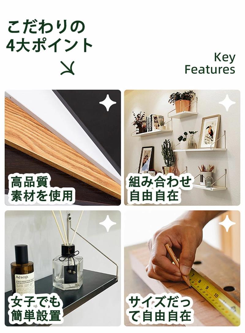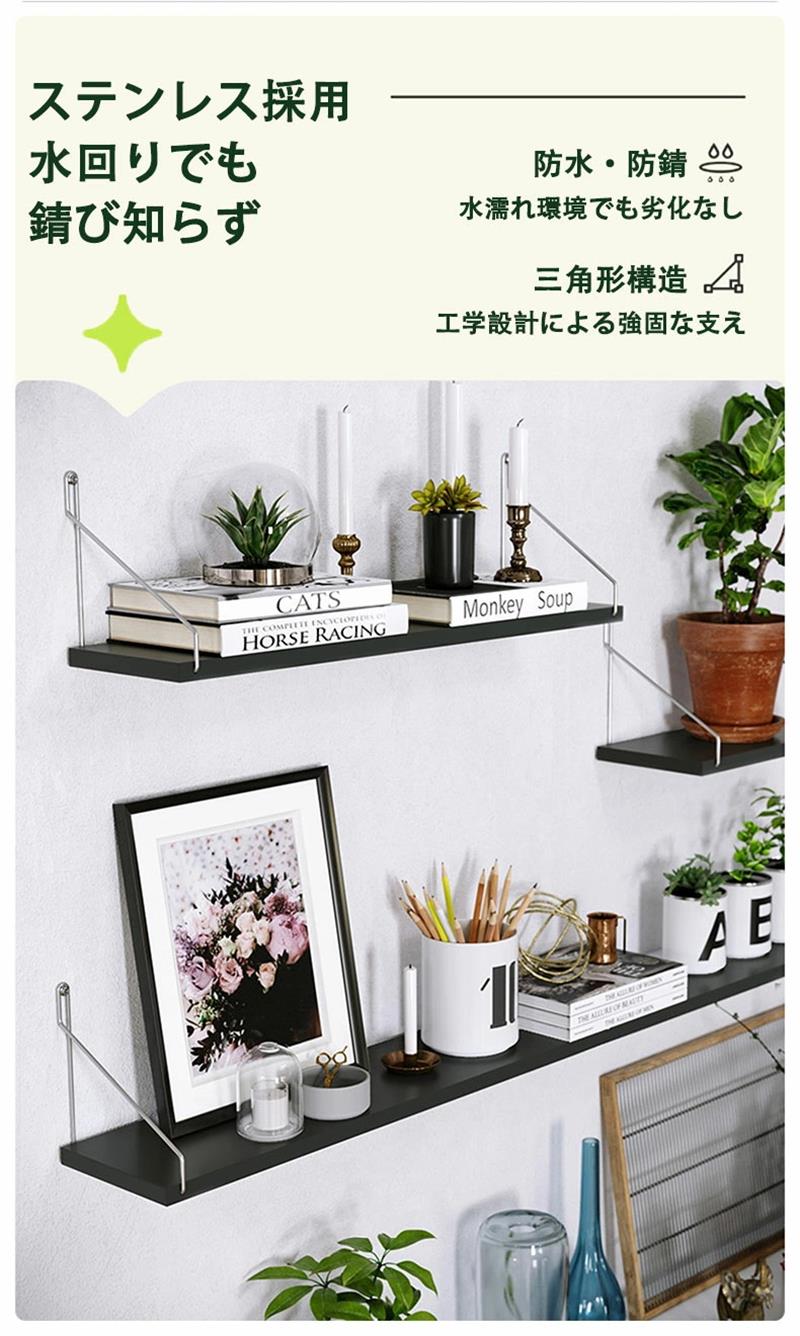 ウォールシェルフ 賃貸 壁 棚 穴あけ ホワイト ブラック 天然木色 30cm 40cm 50cm 60cm 80cm 90cm 100cm