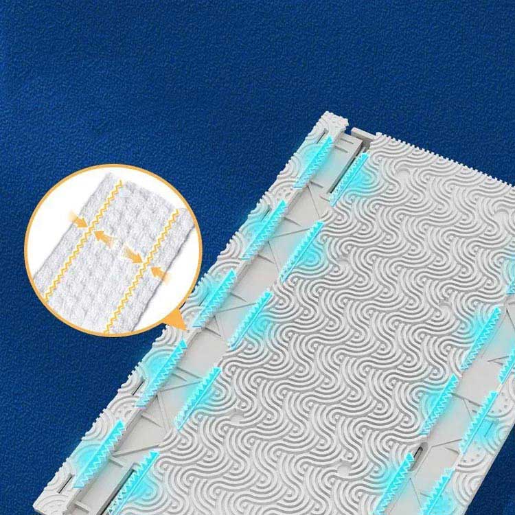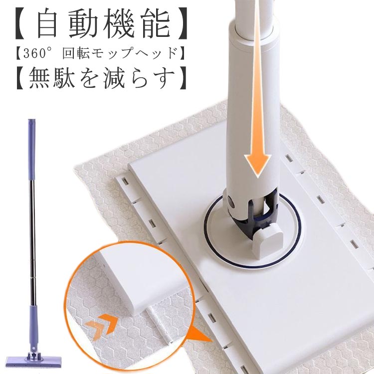 【自動機能】ハンドルを押すだけでベースが開き、手ぬぐいを自動的にクランプまたは解放し、汚れたモップヘッドを曲げたり触れたりする必要はもうありません。モップヘッドの 360° 回転により徹底的な掃除を実現し、タオルの再利用機能によりお金を節約できます。