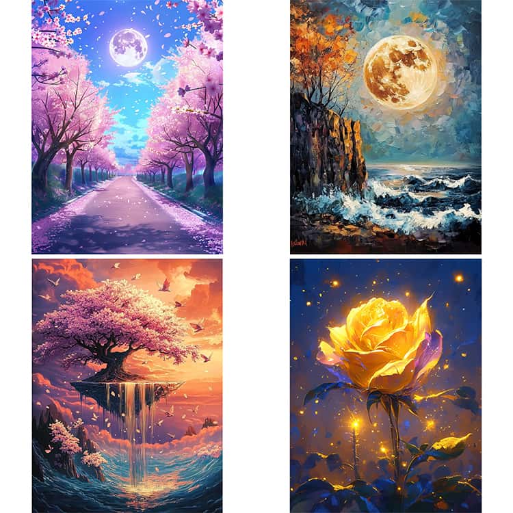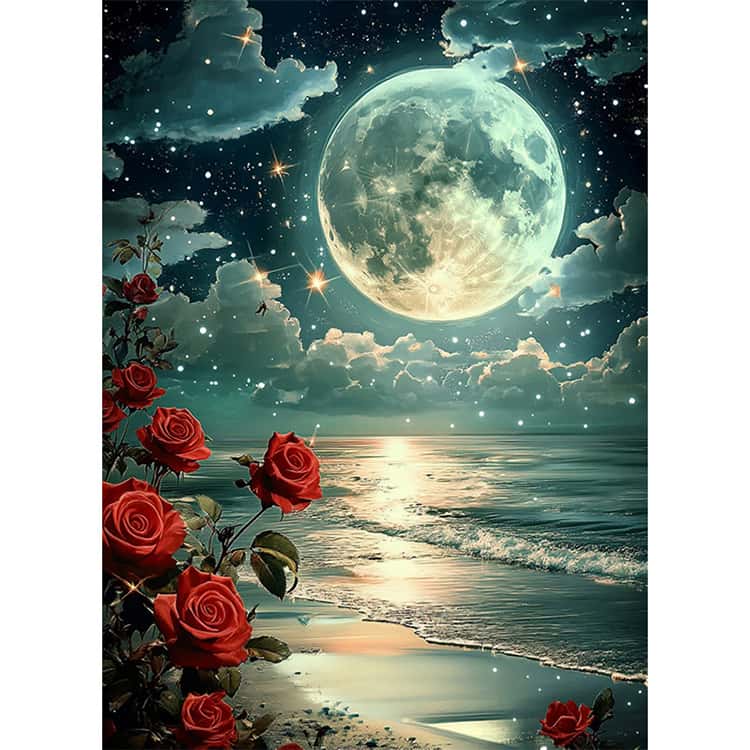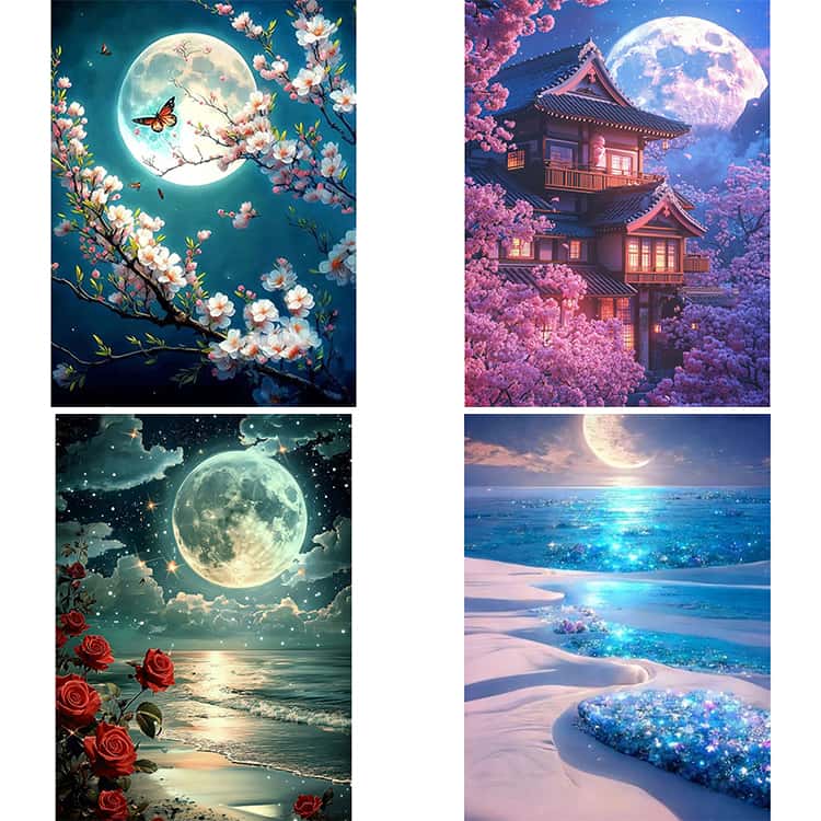 満月 ダイヤモンドアート キット 4点セット 初心者 海 ビーズ 刺繍 ビーズアートキット 月 つき ダイヤモンドフィックス 絵画 風景 ダイヤモンド アート 中級 ダイアモンドアート