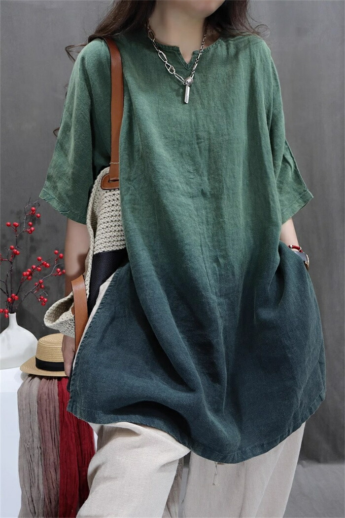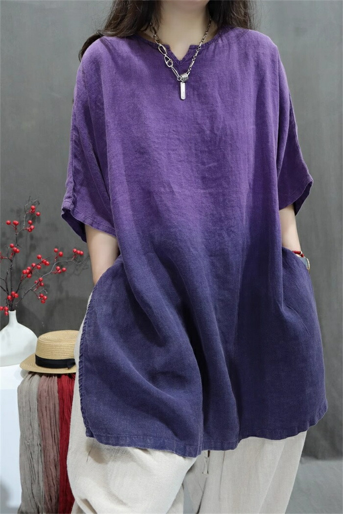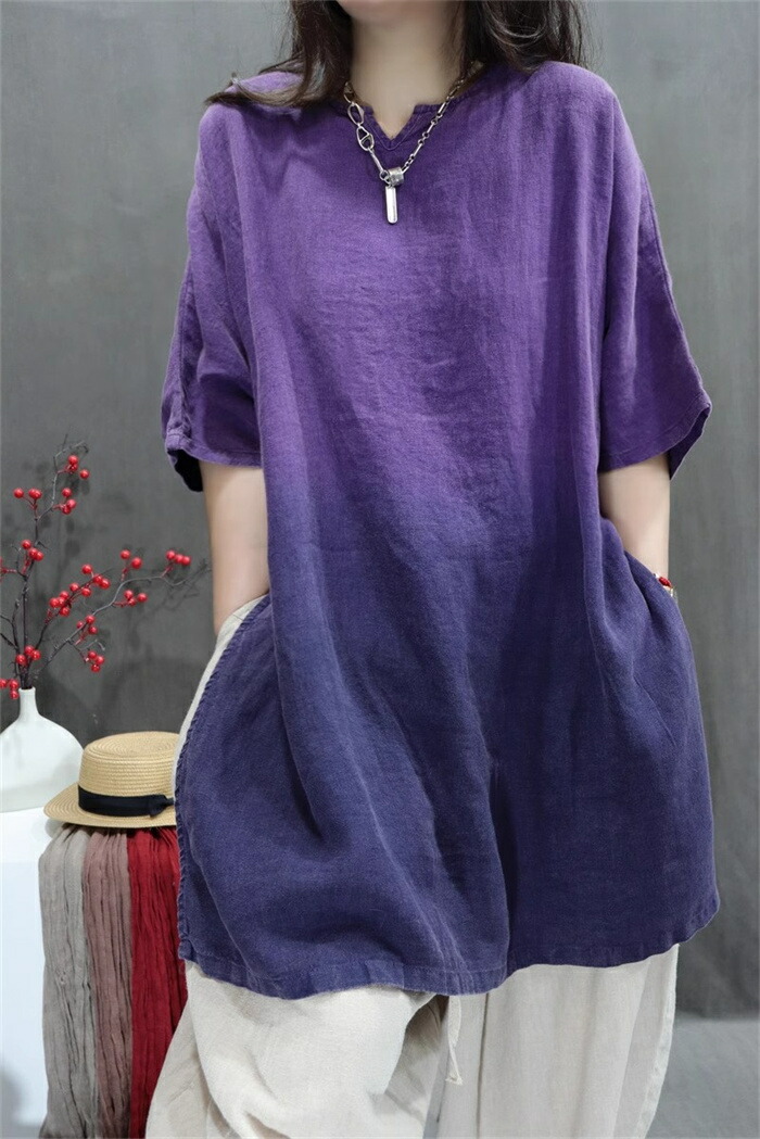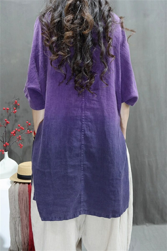 チュニック ブラウス 綿麻 レディース チュニック 早い者勝ち グリーン パープル M L XL 2XL
