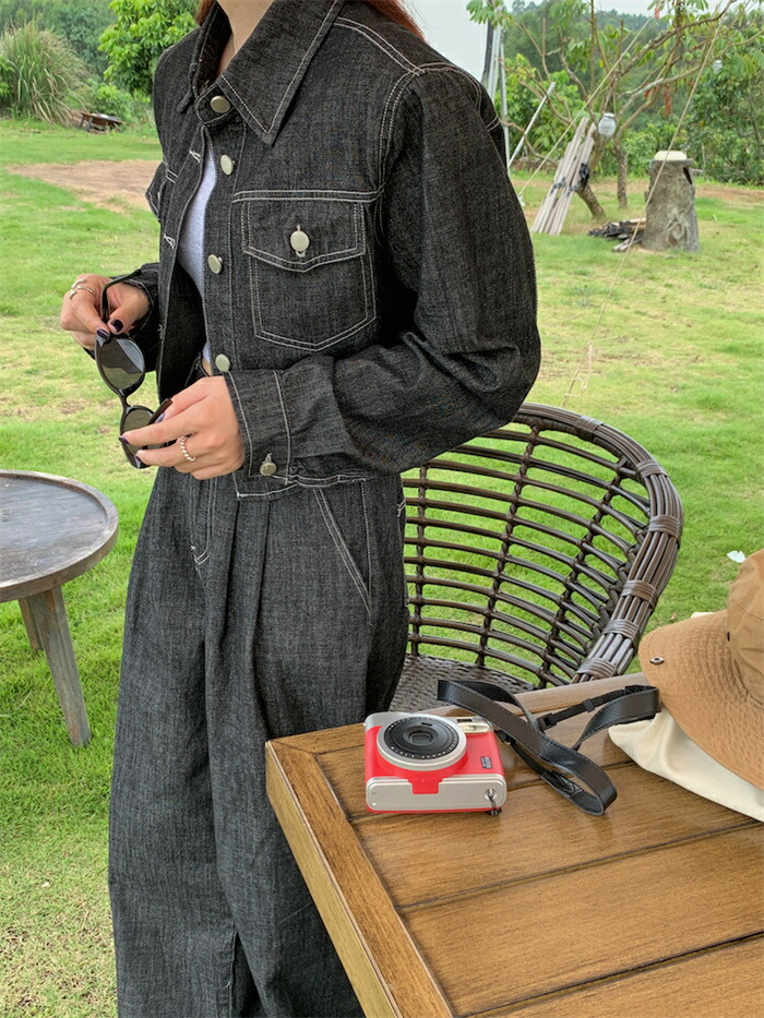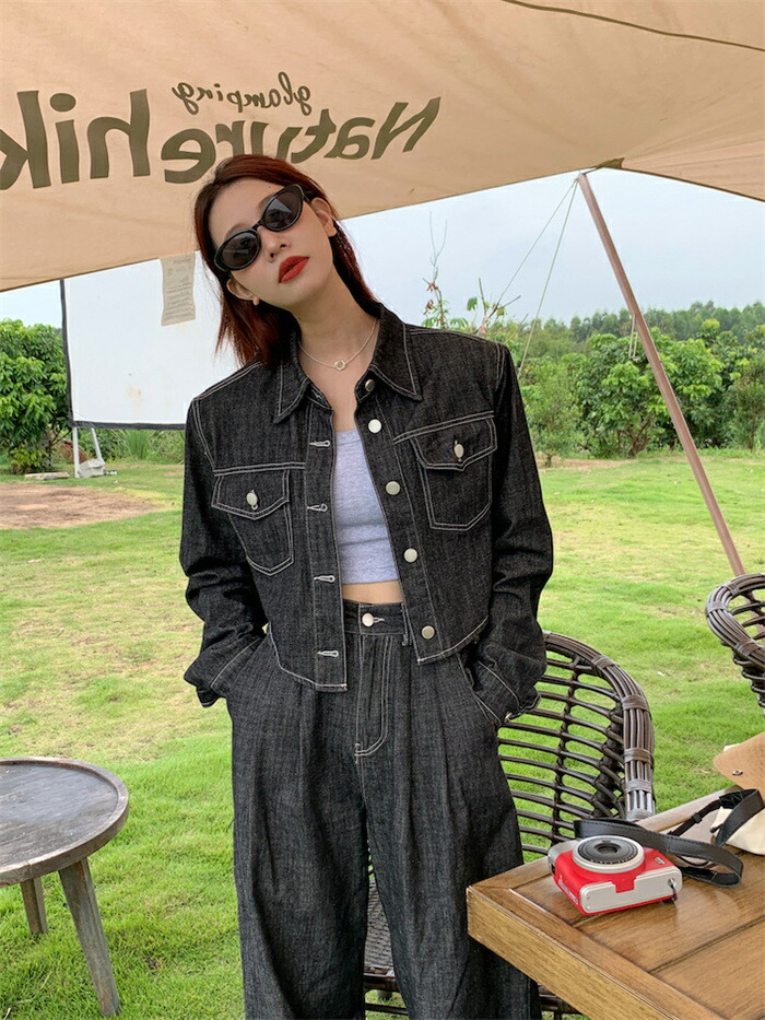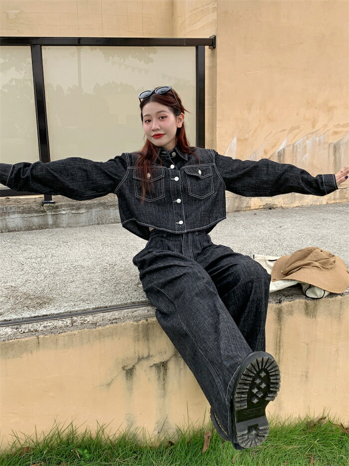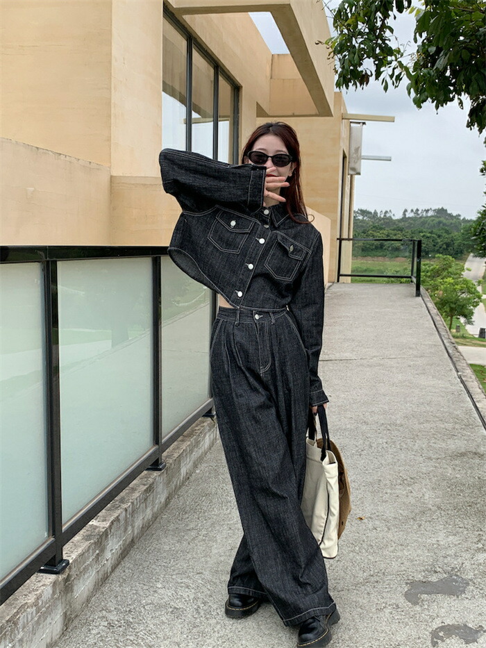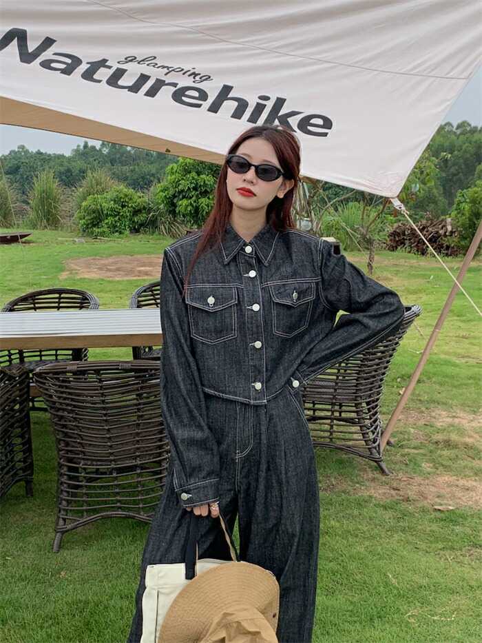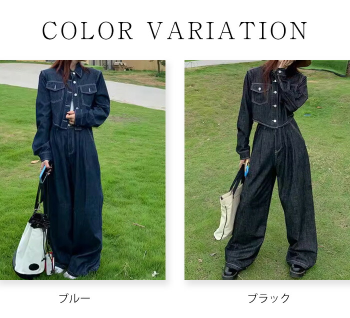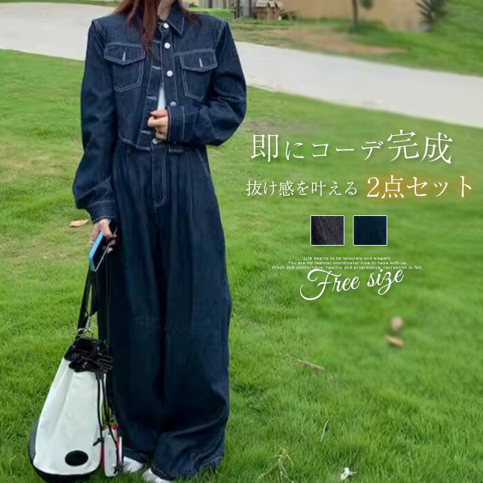 デニム セットアップ レディース 春秋 レディースファッション 人気 ブルー ブラック