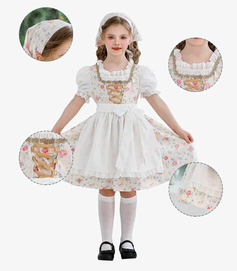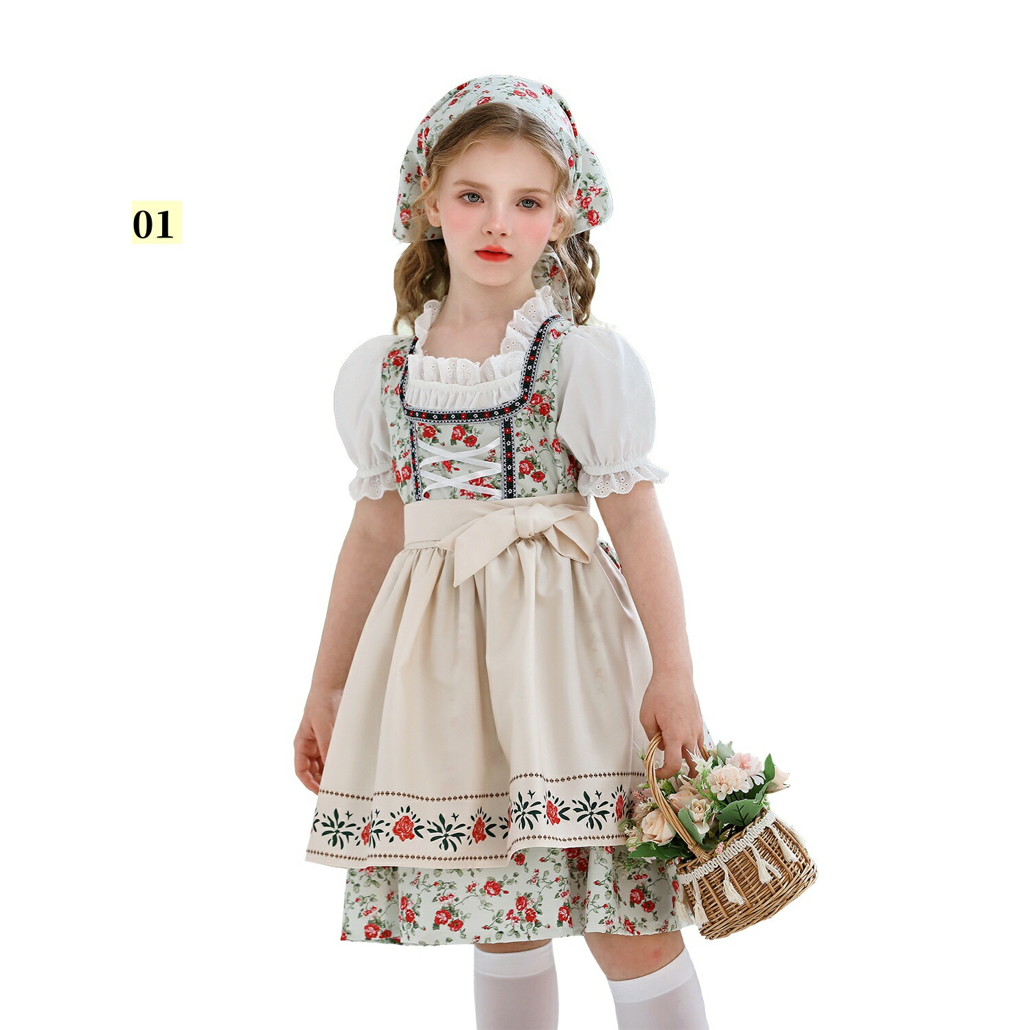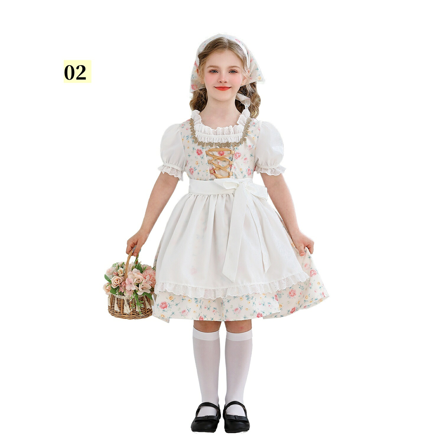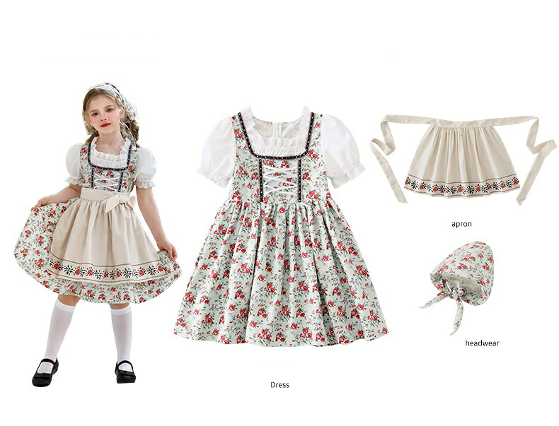 子どもワンピース 半袖ワンピ 子供ロリータ服 ロリータワンピース 小花柄 3点セット エプロン付き フリル お嬢様プリンセス 女の子 森系 森ガール キッズワンピース 普段着 コスプレ衣装 ハ 可愛い