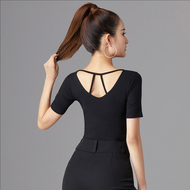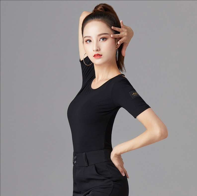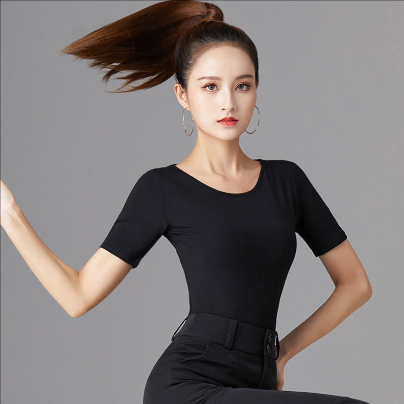 ダンス半袖Tシャツ ダンストップス ヨガトップス レディースフィットネスウェア 細見え クルーネック ストレッチ ダンスウェア レッスン着 練習着 ヨガ服 お家ヨガ ラテンダンス モダ リラックスヨガ