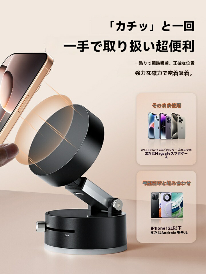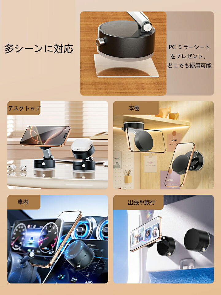 スマホホルダー 真空吸着 マグネット式 スマートフォン 携帯電話用アクセサリー スマートフォンスタンド 人気 ブラック ホワイト ピンク