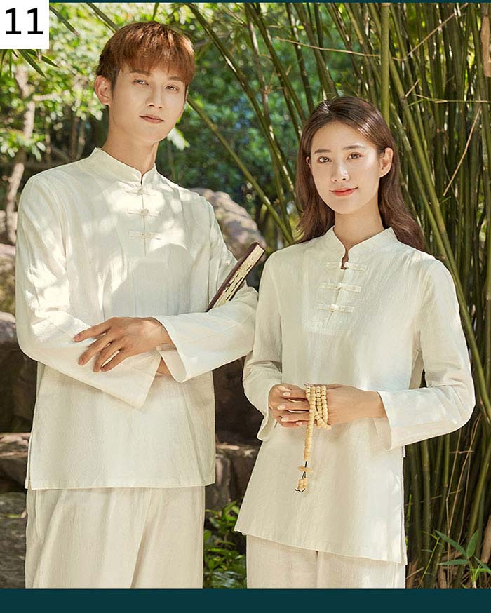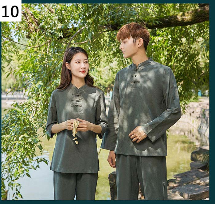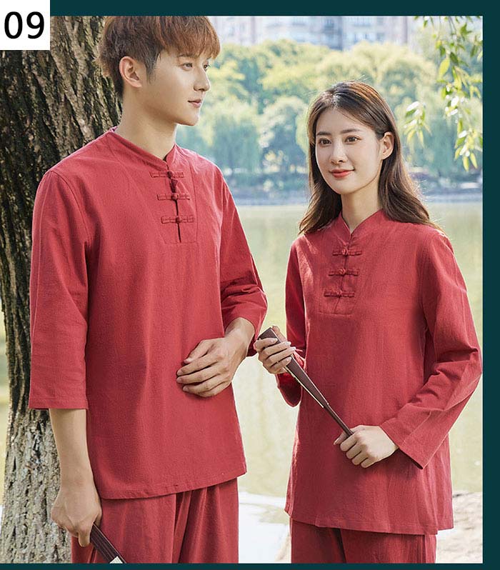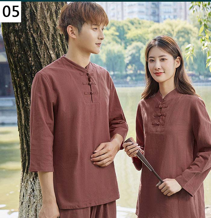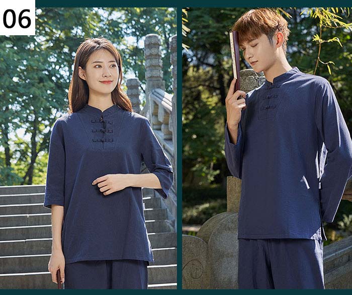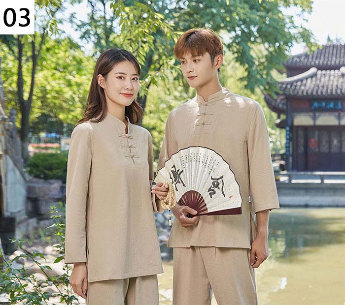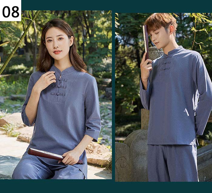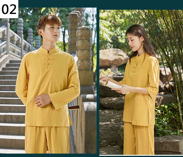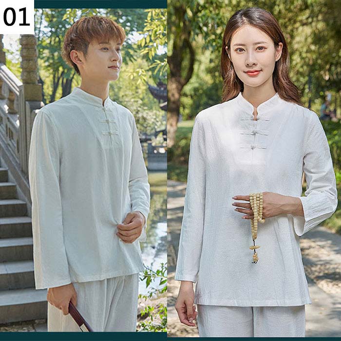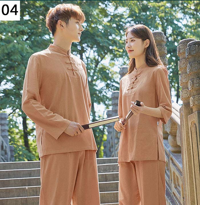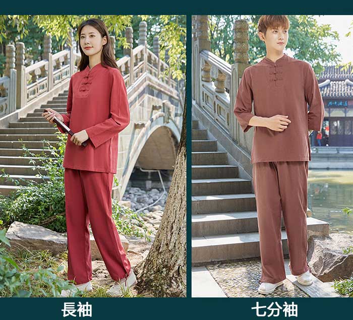 太極拳服 ヨガ服 男女兼用 上下セット 太極拳ウェア 長袖 七分袖 全12色 チャイナ服 太極拳 太極 ヨガ レッスン着 拳法 武術 功夫 カンフーウェア スポーツ用品 中華風 綿麻 練習着 演 茶服